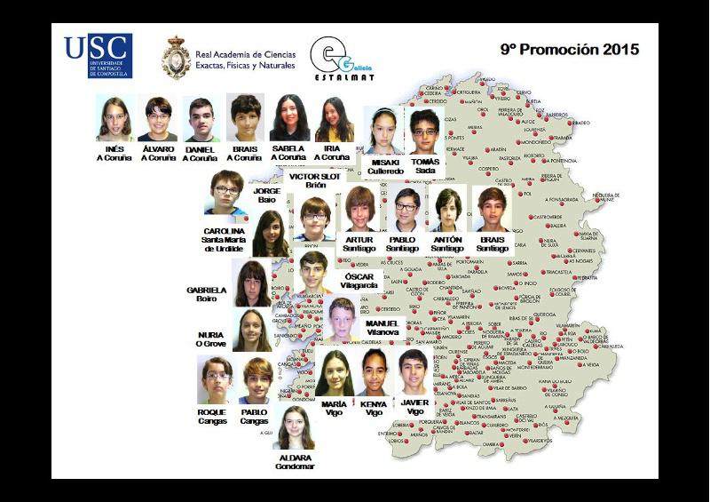 Dez rapazas e quince rapaces nacidos en 2002 e 2003 son os seleccionados de entre un total de 323 estudantes de toda Galicia presentados a unha nova promoción do proxecto Estalmat-Galicia, cuxo obxectivo é o estímulo do talento matemático entre rapaces e rapazas de 12 a 15 anos. A novena promoción deste proxecto iniciará as súas actividades este sábado 19 cunha sesión de benvida ás 10.30 horas na Aula Magna da Facultade de Matemáticas na que estarán acompañados das súas familias, autoridades académicas, patrocinadores, representantes do ensino medio que os avaliaron e equipo docente do proxecto. O reitor e presidente do comité organizador de Estalmat-Galicia, Juan Viaño, presidirá a sesión, na que tamén está prevista a participación da coordinadora xeral de Estalmat-Galicia, Elevan Vázquez Cendón; e a vicedecana da Facultade de Matemáticas, Beatriz Pateiro López. En representación dos patrocinadores principais deste proxecto estarán presentes Manuel Corredoira López, director xeral de Educación, Formación Profesional e Innovación Educativa, e Antonio Leira Piñeiro, en representación da Deputación Provincial da Coruña. Está prevista a intervención do profesor de Matemáticas do IES de Brión, Senén Adán Arias, en recoñecemento aos docentes que avalan aos estudantes participantes nas probas. A presentación da promoción a fará a recentemente elixida coordinadora académica, Marina Gemiñás Miguéns, secretaria do Comité organizador de ESTALMAT-Galicia. Nesta primeira sesión, os 25 estudantes recibirán documentación e deseguido partirán cara un campamento matemático que se celebrará ao longo da fin de semana no Albergue de Ecoturismo Alvarella-Vilarmaior na Coruña, e no que se producirá unha toma de contacto dos participantes nun ambiente lúdico-matemático. Entre as novas actividades programadas para este curso, o alumnado participará nun encontro con estudantes da promoción de Estalmat-Galicia 2010, realizarán a cuarta iteración da alfombra de Sierpinski e empregarán os exemplares da unidade didáctica ‘María Wonenburger: unha científica adiantada ao seu tempo’, proporcionados pola Secretaría Xeral de Igualdade para todos os participantes. Selección Os rapaces e rapazas da novena promoción de Estalmat son os que acadaron os mellores resultados nunha proba realizada o pasado mes de xuño coa participación de 323 estudantes de toda Galicia. Á proba na Facultade de Matemáticas acudiron 180 rapaces e 143 rapazas, na súa maioría procedentes das provincias da Coruña (180) e Pontevedra (98), seguidas de Lugo (27) e Ourense (17), tanto do ensino público (243) como do privado (80). Os/as finalmente seleccionados pertencen á Coruña (16) e Pontevedra (9). Atendendo aos resultados nas probas, a porcentaxe de éxito das nenas (7,69%) é parello ao dos nenos (7,77%). Dende a súa implantación hai nove anos, Estalmat-Galicia examinou na Facultade compostelá a máis de 2.470 estudantes con grande interese polas matemáticas, tendo seleccionado dende entón a 225 talentos matemáticos. Programa Durante o curso, os estudantes seguirán un programa especial de estímulo do talento matemático baixo as directrices de Estalmat-España, iniciativa que dende 1998 vén implantándose en distintas comunidades como Madrid, Cataluña, Castela e León, Castela-A Mancha, Andalucía, Canarias, Valencia e Cantabria. O programa deseñado celebrarase na Facultade de Matemáticas da USC nas mañás de vinte sábados do curso académico. Trátase de detectar e prestar atención a nenos e nenas con talento que, en moitos casos, poden quedar desatendidos nas esferas normais do ensino e da familia. Ademais, Estalmat-Galicia mantén o programa Estalmat-Pi, dirixido a manter o contacto dous anos máis con actividades impartidas en doce sábados do curso.
