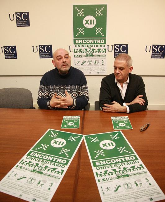 O Encontro Universitario de Danza Contemporánea da USC alcanza a súa décimo segunda edición coa participación dun total de oito compañías cuxas propostas escénicas achegarán a danza universitaria á cidade de Compostela saíndo ao encontro dos espectadores e favorecendo actividades comúns a este colectivo artístico. Nesta nova edición do Encontro de Danza intervirán ademais das compañías dos campus de Santiago e Lugo, dúas compañías da Universidade da Coruña, outra do Campus de Ourense, a da Universidade da Beira do Interior (Portugal), a compañía independente da USC Kaos e a compañía profesional Cisma. Os detalles desta nova convocatoria do Encontro no campus compostelán presentaranos en rolda de prensa o director da Área de Cultura, Pablo Sampedro, e o director do Espazo de Danza Universitario da USC, Juan Carlos Zahera. O encontro celebrarase os días 9 e 10 de abril no Teatro Principal coa colaboración do Concello de Santiago. As actuacións, para as que a entrada é libre previo paso pola billeteira, comezarán ás 21.00 horas e terán unha duración aproximada de 20 minutos. Na inauguración do Encontro está programada unha performance de Danzaterapia que se realizará o mesmo mércores 9 na Igrexa da Universidade ás 13.30 horas. Nesta actuación de entrada igualmente de balde, o alumnado amosará o resultado final do curso realizado este ano polo profesor psicopedagogo Daniel Pregal. Ademais, o xoves 10, o programa de Pezas Curtas amosará nun formato reducido de cinco minutos as producións coreográficas das distintas universidades participantes xunto co alumnado de nivel avanzado do Curso de Bailes Latinos que dirixe o profesor Miguel David Herrera. Será no carril da Facultade de Dereito de Campus Vida ás 13.00 horas. O programa do Encontro comezará o mércores 9 coa actuación da compañía danzaUSClugo quen, baixo a dirección artística de Juan Carlos Zahera e coa coreografía de Rosa Acuña, porá sobre a escena a peza Empatía. No mesmo programa, Aula de Danza Normal da Universidade da Coruña executará ‘ Animais de hábitos nocturnos’, unha coreografía colectiva cuxa dirección artística corresponde a Rut Balbís. Seguiralle a Compañía TeatrUBI da Universidade da Beira Interior, que trae a Compostela ‘Diagnóstico: desgosto patolóxico’ coa dirección artística de Rui Pires. Para completar o primeiro día do encontro a Compañía danzaUSCompostela interpretará ‘Onde se fugan as valentes’, dirixida por Juan Carlos Zahera coa coreografía de Xiana Vilas. O xoves 10 será a quenda de I+D Aula de Danza da Universidade da Coruña, quen baixo a dirección artística de Rut Balbís trae ao festival a peza ‘Punto de Fuga’. Na mesma xornada, a compañía independente da USC Kaos representará ‘A Fuxida’ e D-ou-tras, compañía do Campus de Ourense, a peza ‘Luz e materia’ que dirixe artisticamente Begoña Cuquejo. As actuacións rematarán coa participación dunha compañía profesional convidada, nesta ocasión Cisma, baixo a dirección artística de Xiana Vilas, para presentar ‘ Entrenanas’.