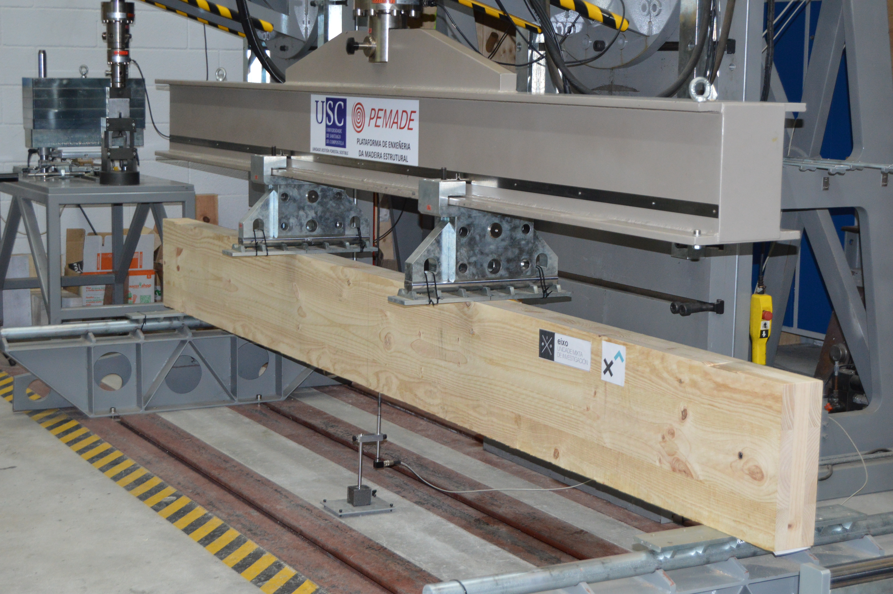 Ensaio de madeira nas instalacións da Plataforma de Madeira Estrutural (Pemade) da USC