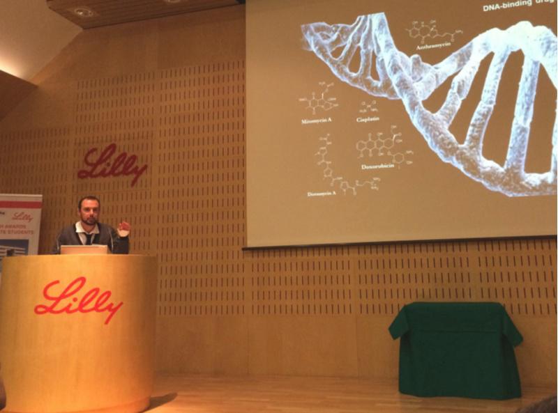 O estudante de doutoramento do CIQUS Mateo Sánchez López foi galardoado cun dos tres Premios de Investigación Lilly na súa décimo segunda edición. Sánchez desenvolve a súa tese doutoral baixo a dirección dos profesores José Luis Mascareñas e M. Eugenio Vázquez na área de química biolóxica. O doutorando da USC é o terceiro investigador predoutoral do CIQUS que recibe este galardón, tras Lorena Tizón en 2012 e Isaac Alonso en 2013. O galardoado centra o seu traballo doutoral no desenvolvemento de moléculas capaces de recoñecer ácidos nucleicos, especialmente ADN, de forma selectiva. Dispor de moléculas intelixentes capaces de alterar dunha maneira predicible e programable procesos específicos, como os implicados na expresión xenética, podería conducir a unha mellor comprensión dos detalles moleculares deses procesos así como proporcionar a base para o descubrimento de novos medicamentos. Estes premios, dotados con 1.500 euros, recoñecen a excelencia académica e a traxectoria de novos investigadores nas áreas de Química Orgánica, Farmacéutica e Analítica de toda España. Como novidade este ano, Lilly, a través do Comité Europeo para as Relacións Académicas (EUACC), designou un Comité Científico Externo para seleccionar os tres premiados, de cuxos traballos destacou “as moi novidosas aproximacións sobre o desenvolvemento de novos fármacos”. O premio foille entregado o paso venres no Centro de Investigación Básica de Lilly España en Madrid nun acto no que Mateo Sánchez tivo ocasión de presentar o seu traballo e que contou cunha conferencia plenaria do profesor John F. Hartwig, da Universidade de California en Berkeley. O feito de que o CIQUS, con pouco máis de tres anos en funcionamento, conseguise ter alumnos premiados nas tres últimas edicións dos Lilly é para a súa directora adxunta, Dolores Pérez, “ realmente significativo e indicativo do nivel da investigación e da capacidade formativa do noso centro”. Ademais, lembra Pérez, o CIQUS destaca por outros premios para novos investigadores, como en 2013 o SusChem ou en 2012 o European Young Chemist Award.