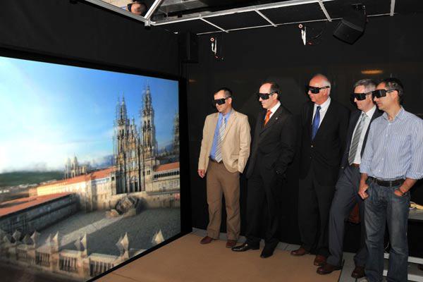 O desenvolvemento de producións 3D, incluíndo modelaxe e animación de escenarios e personaxes, captura de movemento corporal, facial e ‘lypsinc’, son os principais cometidos da Unidade de Visualización Avanzada, presentada publicamente este luns 21 no edificio CACTUS. Na presentación, participaron o reitor en funcións Senén Barro; o reitor electo, Juan Casares; o director de Novo Contexto Dixital de Red.es; Antonio Saravia; e o coodinador da Plataforma para Experimentación e Innovación en Contidos Dixitais da USC, Julián Flores. A presentación comezou cunha visualización de vídeos que puxeron de manifesto a capacidade produtiva destes sistemas de captura de movemento, realidade virtual e visualización avanzada. Deseguido, os participantes trasladáronse ao Instituto de Investigacións Tecnolóxicas da USC onde asistiron a unha demostración do sistema visual inmersivo Cave Automatic Virtual Environment (CAVE) e de captura de movemento, así de diversos proxectos nos que actualmente se atopan traballando esta unidade. Entre os proxectos dos que se deron conta na presentación figuraban ‘Carrilana Virtual’, un xogo no que se realiza un descenso virtual pola zona histórica dunha cidade galega utilizando unha carrilana real; un sistema de navegación 3D, en colaboración co Centro Tecnolóxico de Automoción de Galicia (CTAG); ‘Tiraboleiro virtual’, realizado para a exposición Galicia Dixital, recrea o botafumeiro da Catedral de Santiago, que os visitantes poden accionar tirando dunha corda; un simulador naval de baixo custe, no que o usuario se sitúa á fronte da ponte de mando dun buque, incluíndo situacións de navegación e manobras de risco; e un submarino virtual, na que se recrea en tres dimensións unha viaxe virtual ao fondo da ría de Vigo. CIDUS Esta Unidade de Visualización forma parte da estrutura da Plataforma para a Innovación e Experimentación en Contidos Dixitais da USC (CIDUS), concibida para ofrecer servizos de excelencia en I+D+i e capacitación profesional en todas as fases do ciclo de vida dun contido dixital. O CIDUS traballa activamente en colaboración co sector empresarial desenvolvendo proxectos de transferencia de coñecemento e tecnoloxía aos sectores socioeconómicos. O seu deseño tenta contribuír á capacitación profesional especializada no ámbito dos contidos dixitais, a través de accións formativas demandadas polas empresas; promover a transferencia de tecnoloxía innovadora; e establecer unha interlocución permanente co sector de contidos dixitais, axudando á súa planificación estratéxica. O seu ámbito de traballo abarca todo o ciclo de vida dun contido dixital, tanta na súa vertente tecnolóxica (no relacionado coa realidade virtual, realidade aumentada, interfaces naturais, tecnoloxías ubicuas, xestión de activos dixitais ou ambientes intelixentes) como comunicativa (escenarios virtuais, converxencia de medios, gravación 3D estéreo, edición dixital, concepción e narrativa de contidos). Na actualidade, forman parte do CIDUS sete grupos de investigación da USC, todos eles relacionados cos ámbitos das Tecnoloxías da Información e das Comunicacións e das Ciencias da Comunicación. Do primeiro, están implicados o Laboratorio de Sistemas, e os grupos de Sistemas Intelixentes, de Arquitectura de Computadores e de Visión Artificial. Do ámbito das ciencias da Comunicación, colaboran os grupos de Estudos Visuais, Novos Medios e o de Cidadanía e Comunicación. Na Plataforma atópanse integradas ademais da Unidade de Visualización Avanzada presentada, as unidades de capacitación tecnolóxica, de innovación e experimentación en contidos dixitais, de videoxogos e a Unidade v-learning. Mentres a primeira ofrece apoio ás accións de capacitación tecnolóxica, a de innovación e experimentación encárgase da gravación 2D, 3D e 3D estéreo, edición non-lineal, edición dixital de audio e do desenvolvemento de estratexias de deseño e xestión de proxectos de escenarios virtuais, entre outros.