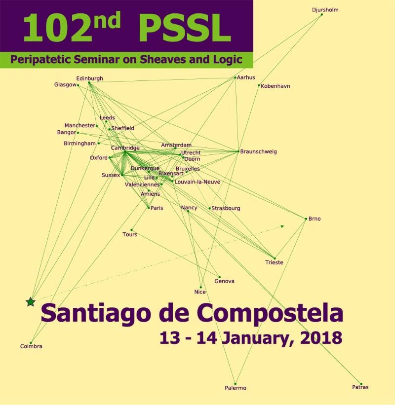 A Facultade de Matemáticas acollerá esta fin de semana, o sábado 13 e domingo 14, a celebración da edición 102ª do Peripatetic Seminar on Sheaves and Logic (PSSL) , unha seminario itinerante de lóxica e teoría de categorías que se celebra periodicamente en distintos países europeos. O encontro volve recalar na universidade compostelá practicamente trinta anos despois de que a facultade da USC acubillará en 1989 a edición número 44.