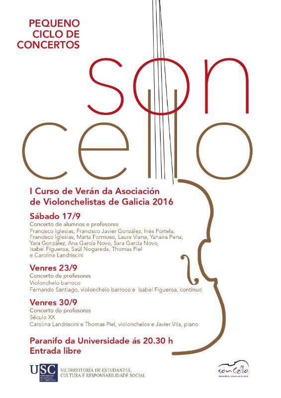 O alumnado e profesorado do primeiro curso de verán da Asociación de Violonchelistas de Galicia Soncello que tivo lugar en xullo en Ferrol ofrecerán un pequeno ciclo de concertos este mes en Compostela, todos con entrada libre.