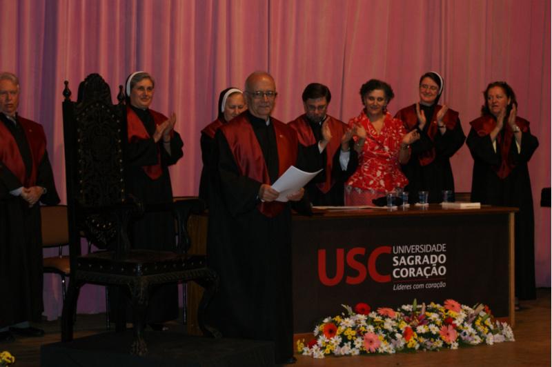 O profesor Francisco Puy Muñoz no acto de nomeamento como doutor  pola Universidade Sagrado Coraçao de Bauru (Brasil)