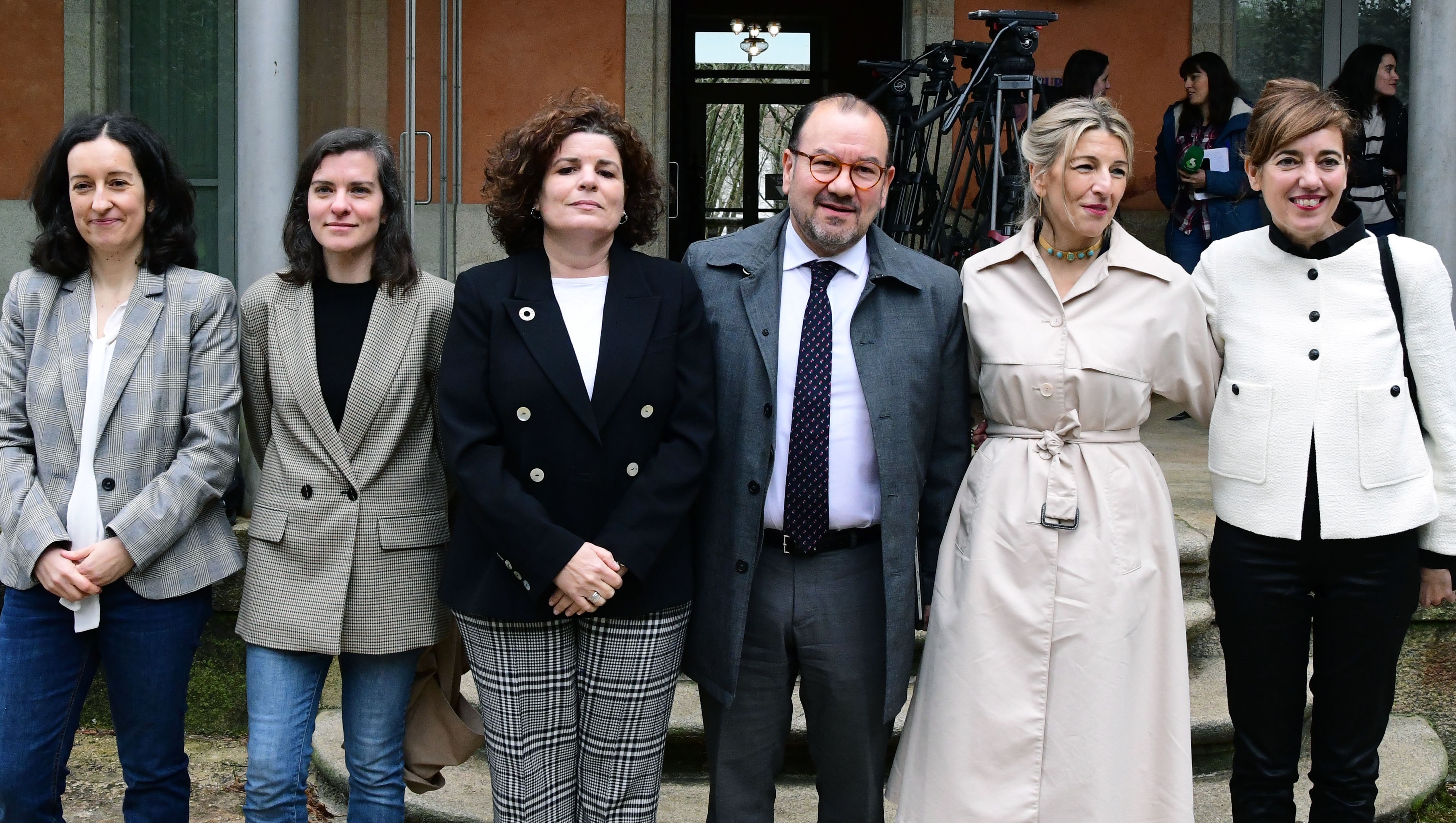 De esquerda a dereita, María Rivas, Antonio López, Marta Lois, Yolanda Díaz e Alba Alonso. FOTO: Santi Alvite