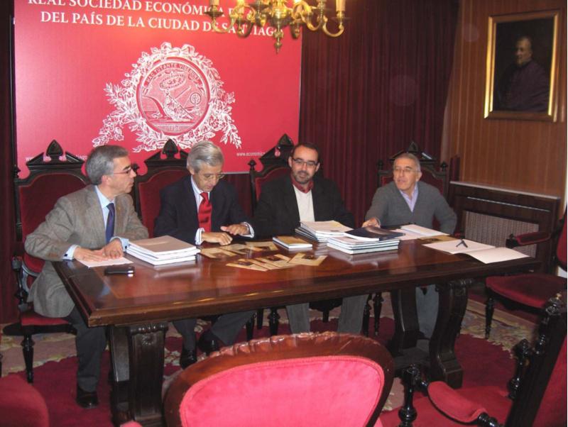 Os profesores Miguel Cabo Villaverde e Antonio Míguez Macho, do Departamento de Historia Contemporánea e de América da USC, resultaron os gañadores da segunda edición do Premio Domingo Fontán de investigación histórica polo traballo ‘A Cámara agrícola e pecuaria de Santiago (1903-1929): Un espazo de sociabilidade e de poder na Compostela da Restauración’. O galardón convócano con carácter bianual a Universidade de Santiago e a Real Sociedade Económica de Amigos do País (RSEAPS). O xurado, que tivo que decidir entre varios traballos de diversas comunidades autónomas, destaca o novidoso do tema da investigación gañadora (do que existe escasa documentación) que mostra as relacións clientelares e realiza unha análise da sociedade civil do momento. A boa utilización da bibliografía e das fontes, a súa estrutura e correcta metodoloxía e a posta en valor dos recursos da Sociedade Económica foron tamén aspectos determinantes polo comité avaliador para a concesión deste galardón académico. Ademais o xurado fixo unha mención especial para a investigación ‘De la música académica al nacionalismo musical. La saga de músicos Courtier en Galicia’, de Beatriz Cancela Montes e Alberto Cancela Montes, que aínda que sen dotación económica se recomendará a súa publicación. Destácase nel tamén con especial fincapé a utilización de fontes moi diversas, a posta en valor dos recursos da Sociedade e a calidade na súa narrativa. O xurado estivo integrado polo vicerreitor de Relacións Exteriores e Internacionalización da USC, Victor Millet Schröder; o decano da Facultade de Xeografía e Historia da USC, Juan Manuel Monterroso Montero; o director do Departamento de Historia Económica da USC, Xoán Carmona Badia; e o presidente e secretario da RSEAPS, Juan B. de la Salle Barreiro Pérez e Fernando Barros Fornos, respectivamente. O Premio Ao premio, dotado con 2.000 euros, poden presentarse traballos de investigación histórica, paleográfica, xeográfica, artística, arquivística, patrimonial, bibliográfica ou calquera outro de investigación de carácter histórico fundamentado no patrimonio e documentación da RSEAPS ou baseado no período e motivo da súa creación. O nome do certame fai honra a Domingo Fontán, autor da Carta Xeométrica de Galicia de 1834, o primeiro mapa realizado en España con rigor científico mediante métodos matemáticos e que será a base para a realización do trazado de novas estradas. O mapa de Fontán foi unha obra revolucionaria que tivo plena validez durante máis dun século, sendo pioneira ao adiantarse non só ao conxunto do estado español senón tamén a moitos países europeos. Como novidade na súa elaboración, Domingo Fontán botou man do traballo de campo e do uso do procedemento de triangulación, ata ese momento so empregado na cartografía marítima, que forneceron de exactitude o resultado final.