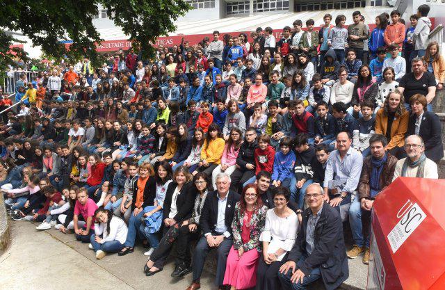 Os 364 participantes na proba de selección de Estalmat-Galicia 2018 e membros do comité organizador e responsables da proba na Facultade de Matemáticas da USC o pasado mes de xuño