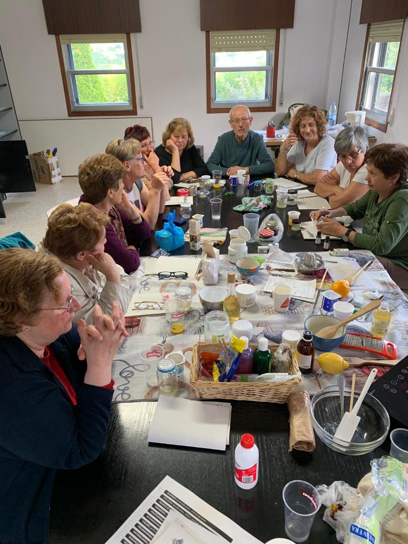 Durante o presente curso, o proxecto ‘Descarboniza! Que non é pouco…’ contou co apoio da Fundación Biodiversidade, do Ministerio para a Transición Ecolóxica, dentro da liña de axudas destinadas a proxectos de adaptación ao cambio climático. Dende o pasado mes de xaneiro, nun traballo desenvolvido en paralelo coa Fundación Cristina Enea do concello de San Sebastián/Donostia, traballouse con oito grupos en Santiago (Vite, Santa Marta, A Rocha, Sar, Lavacolla, Busto e Bornais -2-) e 3 en San Sebastián (Altza, Egia e Ategorrieta). A través de varias sesións de traballo, os grupos, compostos fundamentalmente por mulleres da terceira idade, analizaron as causas e consecuencias do cambio climático e tamén que podían facer elas para enfrontalo.