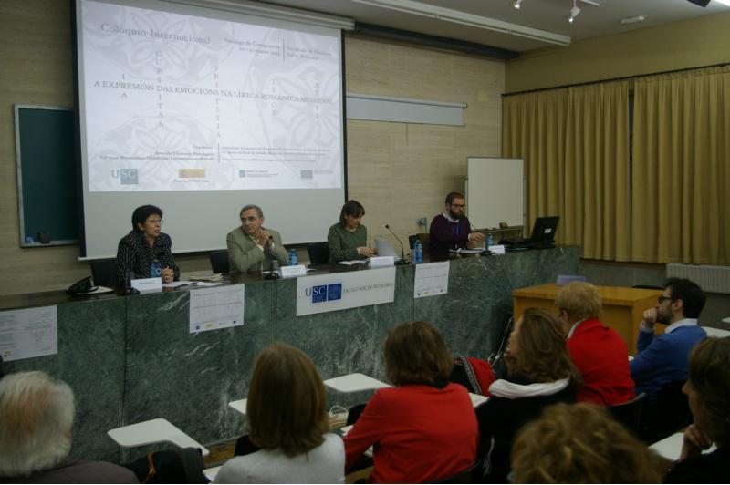 Con motivo da presentación en maio de 2011 da versión electrónica conxunta das bases de datos Trobadors, Trouveors, Trobadores e LirIO, que recollen os corpora correspondentes ás catro grandes tradicións líricas medievais en lingua románica, deuse a coñecer un proxecto que iniciaba a súa andaina baixo o título Il lessico delle emozioni nella lirica europea medievale e un nuovo database, coordinado polo profesor Roberto Antonelli, coa colaboración de Rocco Distilo, Paolo Canettieri, Mercedes Brea e Lino Leonardi, responsables, respectivamente, de cada unha das devanditas bases de datos. Para levar a cabo o estudo do corpus lírico profano galego-portugués, o grupo Románicas (Filoloxía, Literatura medieval) da USC solicitou o proxecto 'La expresión de las emociones en la lírica románica medieval' no que xuntou un equipo de investigadores/as de distintas universidades españolas e europeas. Na fase final do proxecto desenvólvese estes días en Filoloxía un coloquio internacional para dar a coñecer os principais resultados do equipo da USC e dos outros tres grupos que comparten os obxectivos comúns. O encontro inaugurouse este martes nun acto que contou coa presenza da decana da Facultade de Filoloxía, María José López Couso; do director do Departamento de Filoloxía Galega, Francisco A. Cidrás Escáneo; e dos docentes Mercedes Brea e Miguel Á. Pousada, membros do comité organizador. Entre os conferenciantes da xornada figuran Roberto Antonelli, da Università degli Studi di Roma La Sapienza; Rocco Distilo, da Università della Calabria; Roberto Rea, da Università degli Studi di Roma Tor Vergata; Carmen F. Blanco Valdés, da Universidade de Córdoba; e Elvira Fidalgo e Ana M. Domínguez Ferro, da USC. Presentan as sesións Santiago López-Morás e Isabel González, da Universidade compostelá.