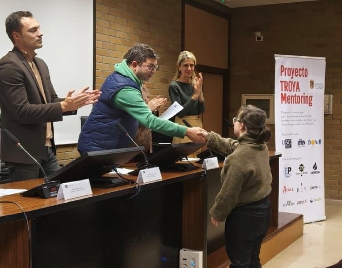 A Aula TIC Pemes da Universidade de Santiago de Compostela continúa fomentando a empregabilidade de determinados colectivos en risco de exclusión social a través de iniciativas como o proxecto Troya. O vicerreitor de Organización Académica e Campus de Lugo, Francisco Fraga López, presidiu este martes 2, o acto de clausura deste curso para o desenvolvemento de habilidades empresariais dirixido a persoas con síndrome de down e discapacidade intelectual que chega á súa fin logo de fomentar as competencias profesionais de case unha decena de participantes.