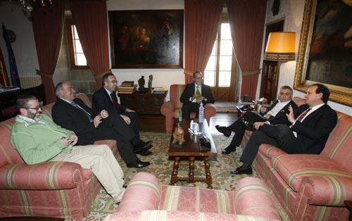 O candidato socialista ao Congreso dos Deputados pola provincia de A Coruña, Ceferino Díaz, e o alcalde de Santiago, Xosé Sánchez Bugallo, reuníronse este mércores no Colexio de San Xerome con membros do equipo reitoral encabezado polo reitor Senén Barro.
