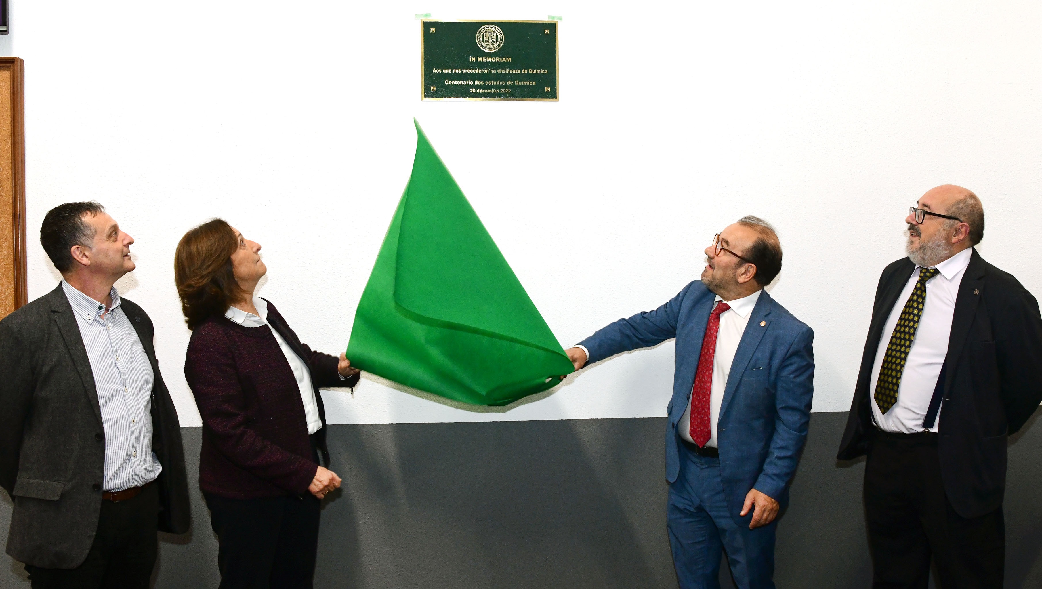 A presentación do libro Cuestión de Química. Cien años de estudios de Química en la Universidad de Santiago de Compostela 1922-2022 serviu de colofón este martes 20, ao amplo e diverso programa de actividades que esta facultade da USC desenvolveu ao longo de 2022 co gallo da conmemoración do centenario dos estudos de química en Galicia. O reitor Antonio López presidiu o acto institucional que serviu de peche a doce meses ateigados de exposicións, conferencias, xornadas de portas abertas, ou actividades diversas para alumnado de educación secundaria e bacharelato. A inauguración dunha placa conmemorativa no vestíbulo da Facultade serviu de rúbrica para a celebración deste aniversario.