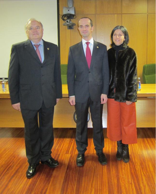Diego Rois, entre os directores da súa tese, José Luis Benedito e Marta López Alonso, en Veterinaria