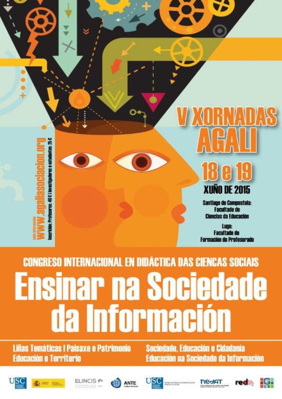 A Asociación Universitaria de Ciencias Sociais e Humanidades Galicia Iberoamérica (AGALI) organiza co apoio da USC as súas quintas xornadas , dedicadas nesta ocasión á ensinanza na Sociedade da Información, que terán lugar os días 18 e 19 de xuño nas Facultades de Ciencias da Educación (Campus Norte) de Santiago e de Formación do Profesorado de Lugo. A organización, na que están tamén presentes ANTE, ELINCIS e varias redes de investigación galegas e estatais, mantén aberto ata o día 12 o prazo tanto para inscribirse como para enviar comunicacións. Os expertos Xosé Manuel Souto González, da Universidade de Valencia, e Joan Santacana i Mestre, de Barcelona, serán os encargados de pronunciar as únicas dúas conferencias que terán lugar no encontro. O primeiro preguntarase na súa intervención qué pode facer o bo profesorado de Xeografía e Historia no ensino básico, mentres que o docente catalán tratará de explicar os retos de educar na xeración app. O resto das xornadas estrutúrase en sesións de comunicacións e catro mesas redondas sobre o aproveitamento didáctico do patrimonio, o mestrado investigador como desafío para o futuro, a confluencia entre as áreas de lingua e literatura e ciencias sociais e as controversias sociocientíficas, coa problemática do lobo en Galicia como caso de estudo.