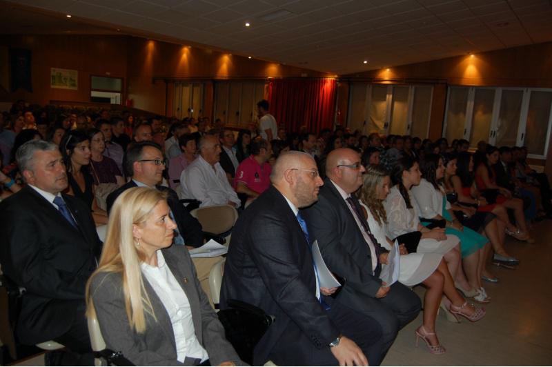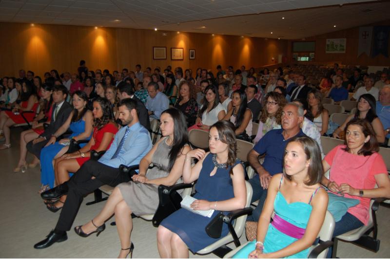 O representante dos alumnos/as, o novo graduado en Nutrición Humana e Dietética Fernando Rodríguez Sánchez, abriu a quenda de intervencións cunha lembranza das experiencias vividas no período 2010-2014 na Facultade de Ciencias de Lugo. Ao seu remate, os profesores Jesús Casabiell Pintos e Beatriz Vázquez Belda, designados polos estudantes como padriño e madriña, respectivamente, desta primeira promoción, eloxiaron o esforzo e o bo traballo feito polos novos titulados/as durante o seu período de formación, para logo encomendarlles que, a través do seu exercicio profesional, poñan en práctica os coñecementos adquiridos e traballen a prol dunha titulación “ata fai pouco tempo descoñecida, pero que ten moito futuro por diante e que está chamada a cobrar unha importancia crecente”. Unha vez rematadas as intervencións, o secretario da Facultade de Ciencias do campus de Lugo, Antonio Rumbo, citou nomeadamente aos novos graduados/as en Nutrición Humana e Dietética, que recibiron cadanseu diploma e as súas becas de graduados. O alcalde de Lugo, José López Orozco; o deputado provincial delegado da área de Cooperación e Asistencia aos Concellos, Álvaro Santos Ramos; a coordinadora do grao en Nutrición Humana e Dietética da USC, Olga Díaz Rubio, e o decano da Facultade de Ciencias, José Manuel Martínez Ageitos, tamén interviron nesta cerimonia académica de graduación. A “xornada de festa”, segundo dixo o reitor Juan Viaño, e de despedida da primeira promoción do grao en Nutrición Humana e Dietética da USC congregou no salón de actos da Facultade de Ciencias un nutrido grupo de profesores implicados na docencia deste título, así como numerosos familiares e amigos dos novos graduados/as. Graduados/as, docentes e asistentes á cerimonia de graduación da primeira promoción de do grao en Nutrición Humana e Dietética Graduados da primeira promoción de titulados en Nutrición Humana e Dietética egresada da Facultade de Ciencias da USC