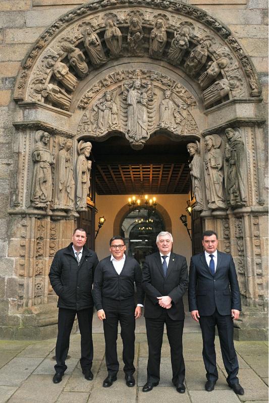 O reitor Juan Viaño recibiu unha delegación de representantes de universidades de Uzbekistán e Kazakhstan que esta semana participan na xuntanza de lanzamento do proxecto europeo ECCUM (Establishment of Computing Centers and Curriculum Development in Mathematical Engineering Master program), que coordina a USC. No despacho reitoral de San Xerome, o reitor reuniuse con seu homólogo da International Information Technologies University, Damir Shynybekov; co vicerreitor de Investigación da Urgench State University, Ikram Abdullaev; e co vicerreitor de Asuntos Académicos da Bukhara Institute of Engineering and Technology, Olimov Kahramon.