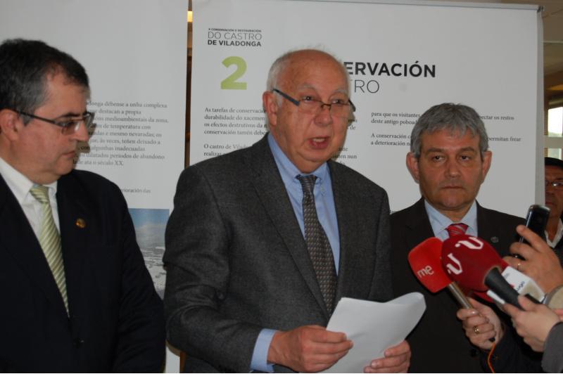 O reitor Juan Casares lee o comunicado entre os vicerreitores Pablo Ramil (esquerda) e Pedro García Herradón