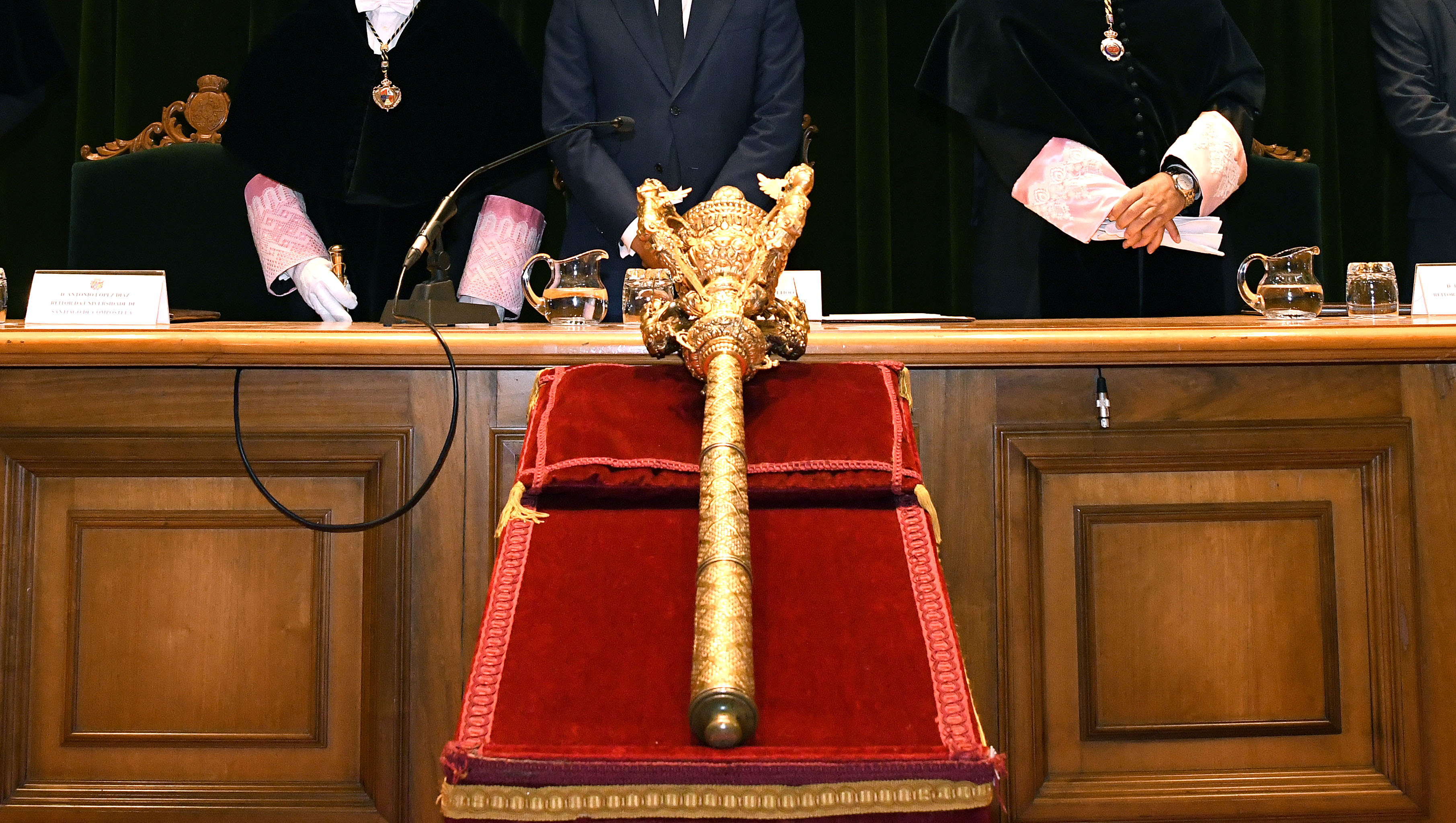 A USC e a Asociación Ourives de Compostela asinaron un convenio marco de colaboración para o desenvolvemento de accións conxuntas en materia de investigación, documentación e extensión cultural naquelas áreas relacionadas cos fenómenos cuncheiro, prateiro, acibecheiro e bronceiro da cidade compostelá. Logo do acto de sinatura, representantes de ambas as dúas entidades mantiveron unha reunión de traballo na que se acordou a restauración da maza da USC ao longo deste ano 2020.