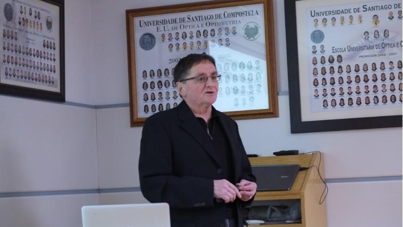 O profesor inglés achegouse a Santiago convidado polo Instituto de Investigacións Tecnolóxicas da USC que dirixe o profesor Daniel Baldomir para participar na reunión dun grupo multidisciplinar de científicos especialistas en nanopartículas magnéticas para o tratamento de cancro mediante hipertermia. A relación do conferenciante cos aspectos prácticos permitiulle falar de cuestións do “día a día” como, por exemplo dos compoñentes magnéticos dos coches ou os discos duros dos ordenadores.