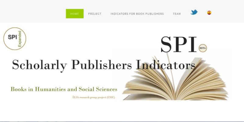 SPI (Scholarly Publishers Indicators in Humanities and Social Sciences) elabórao e execútaa o grupo de ILIA de investigación bibliométrica do CSIC, especializado na edición e libro académico. Este é un sistema de información que, a partir de enquisas directas ao profesorado e persoal investigador de todo o Estado, ofrece indicadores e ferramentas relacionados coas editoriais científicas ou de interese para a investigación no ámbito das Humanidades e as Ciencias Sociais. Os indicadores que se inclúen pretenden servir como referencia (non como valor definitivo dunha editorial) nos procesos de avaliación e permitir a obxectivación dalgúns conceptos como o do “prestixio da editorial”, ata o punto de que o índice se incorporou xa como elemento de valoración nalgunhas áreas das Ciencias Sociais e Humanidades nos criterios específicos aprobados en novembro de 2017 pola Comisión Nacional Avaliadora da Actividade Investigadora.