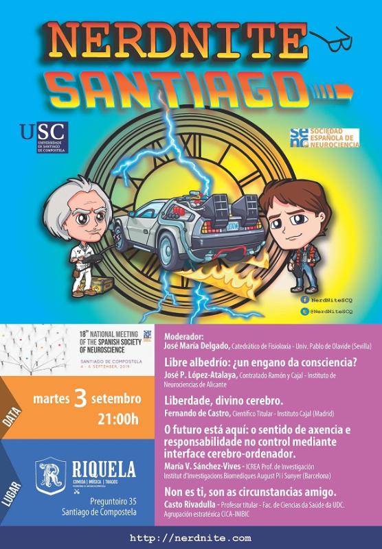 As NerdNites comezarán o martes 3 de setembro, a partir das 21.30 horas, no Riquela (Preguntorio, 35) a súa oitava edición cunha sesión monográfica que leva por título ‘Cerebro e liberdade’. Esta primeira NerdNite, organizada en colaboración coa Sociedad Española de Neurociencia co gallo da súa celebración en Santiago do seu congreso bienal, estará moderada por José María Delgado, catedrático de Fisioloxía da Universidade Pablo de Olavide de Sevilla, e contará como relatores con diversos especialistas procedentes de toda España.