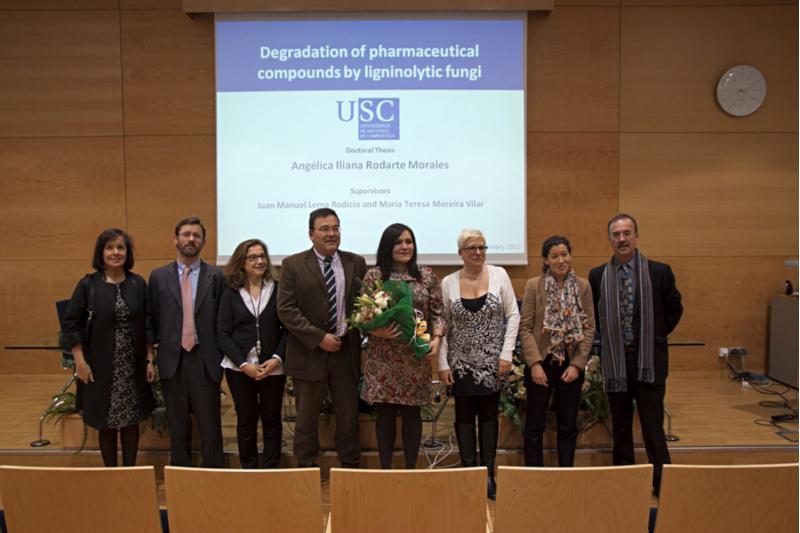 A doutoranda Angelica Iliana Rodarte Morales defendeu na Escola Técnica Superior de Enxeñaría da USC a súa tese de doutoramento encamiñada a reducir a toxicidade de augas residuais urbanas permitindo a súa completa depuración. O traballo formula unha técnica –a implementar en conxunto con tecnoloxías máis convencionais- para eliminar compostos farmacéuticos (antibióticos, antipresivos...) das augas residuais urbanas mediante a aplicación dun sistema biolóxico baseado no uso de fungos naturais que se poden atopar nas fragas galegas. Trátase dos basidiomicetos de podremia branca, capaces de romper os enlaces de moléculas orgánicas complexas. O tribunal, que lle concedeu a cualificación de Sobresaliente cum laude, estivo composto polo investigador do CSIC e Premio Jaime I á Protección do Medio Ambiente en 2001, Sixto Malato Rodríguez; a profesora de Enxeñaría Química da Universidade Autónoma de Barcelona, Gloria Caminal Saperas; a investigadora do CSIC Susana Camarero Fernández; o catedrático de Enxeñaría Química da USC, Francisco Omil Prieto; e a investigadora posdoutoral Juan de la Cierva na Autónoma de Barcelona, Carmen López Díaz. A tese ‘Degradation of pharmaceuticals compounds by ligninolytic fungi’ dirixírona os profesores Juan Manuel Lema e María Teresa Moreira, do grupo de investigación de Enxeñaría ambiental e bioprocesos.