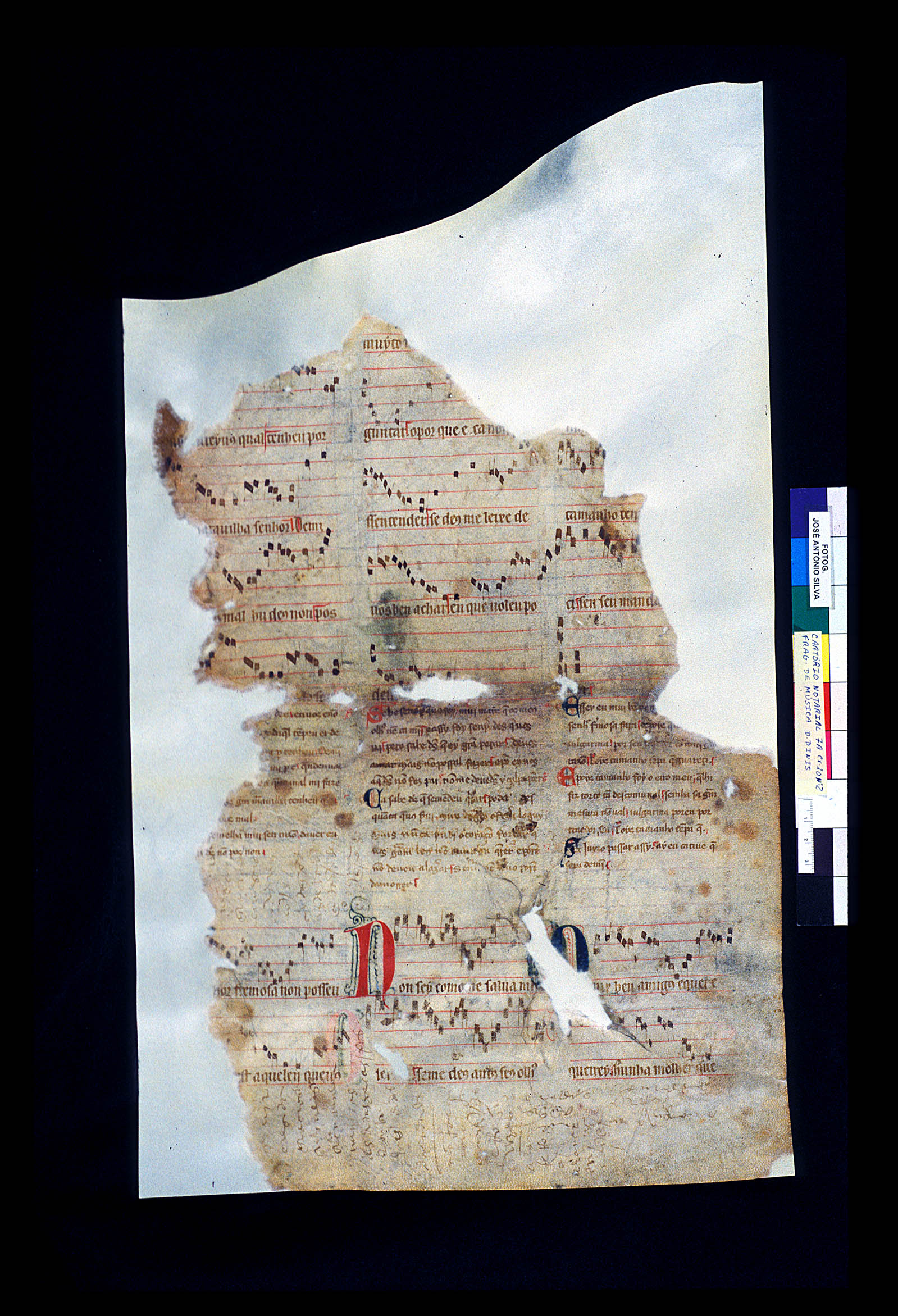 O investigador galego sinala que “Colocci conseguiu facerse cun cancioneiro medieval, con seguridade de mediados do século XIV e procedente de Portugal, que na actualidade está desaparecido”. Respecto a isto, Fernández Guiadanes defende a supervivencia dun folio deste cancioneiro, que el identifica co denominado Pergamiño Sharrer, descuberto en 1990 por Harvey Sharrer na Torre do Tombo, en Lisboa.