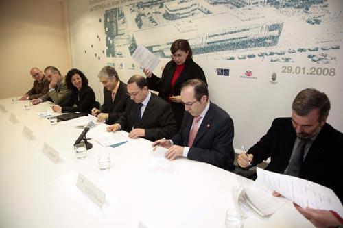 Os reitores das universidades de Santiago, Vigo e A Coruña, Senén Barro, Alberto Gago e Xosé Mª Barja, respectivamente; o conselleiro de Innovación e Industria, Fernando Blanco; a presidenta do padroado da Fundación Cidade da Cultura de Galicia, Ánxela Bugallo; o secretario xeral de Comunidade da Xunta de Galicia, Fernando Salgado; e o director xeral da CRTVTG, Benigno Sánchez, asinaron este martes 29 un convenio de colaboración para a renovación tecnolóxica das instalacións da Compañía da Radio Televisión de Galicia (CRTVG) e das súas sociedades, Televisión de Galicia e Radiotelevisión Galicia.