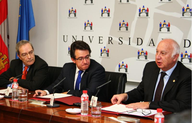 As universidades de Santiago e Burgos xunto coa Obra Social ‘la Caixa’ van realizar dende o vindeiro 1 de xaneiro de 2013 e ata o 31 de decembro de 2016 unha investigación sobre a interacción de ADN con complexos de Rutenio e clústeres cuánticos atómicos de metais nobres, para estudar a súa potencialidade como tratamento do cancro. O reitor Juan Casares e o seu homólogo na Universidade de Burgos, Alfonso Murillo, xunto ao director executivo de Obra Social ‘la Caixa’, Jaime Lanaspa, asinaron un convenio e presentaron as particularidades do proxecto este mércores 21 en Burgos. Mentres que as institucións universitarias achegarán todos os recursos humanos, materiais e técnicos necesarios para o desenvolvemento da investigación, Obra Social financiará os traballos con 1,1 millóns de euros. O proxecto, coa denominación ‘Interacción de ADN con complexos organometálicos de Ru(II) e Clústeres Cuánticos Atómicos (AQC’s)’, ten como finalidade contribuír ao coñecemento dos modos en que determinadas sustancias sintéticas, contendo metais, actúan fronte moléculas biolóxicas e dos seus mecanismos de acción farmacolóxica. Por parte da USC, participarán nos traballos de investigación os profesores Arturo López Quintela, catedrático de Química Física, e Fernando Domínguez, catedrático de Fisioloxía. AQC’s O equipo compostelán centrarase nos AQC’s. Os traballos previos desenvolvidos polos investigadores da USC neste eido mostra que se trata dunha familia de compostos completamente nova cun alto potencial de uso como axentes quimioterapéutico para inhibir a proliferación de células canceríxenas. Neste senso, os investigadores xa teñen observado que estes clústeres constituídos por un número pequeno, inferior a 10-15, de átomos de elementos metálicos (como prata ou ouro) con xeometría planar ou cuasi planar presentan, entre outras, actividade inhibidora das toposiomerasas I e II por intercalación parcial no ADN, tendo como resultado a eventual morte celular por apoptose. Tamén teñen comprobado que os AQC’s son moi activos en combinación terapéutica con Camptotecina e outros fármacos antitumorais de uso clínico. Os clústeres estudados ata o momento teñen propiedades físico-químicas que os converten en especialmente atractivos para alcanzar con maior éxito a súa diana. Como explican os investigadores, debido á súa natureza compórtanse como moléculas, non como metais e non presentan carga. Deste xeito, o seu baixo peso molecular e ausencia de carga redundan en beneficio dunha maior durabilidade en tecidos biolóxicos Co novo proxecto asinado este mércores, o grupo da USC proponse realizar un estudo sistemáticos, analizando non só a influencia do tamaño dos clústeres senón tamén a influencia das substancias a utilizar (ouro, prata ou platino) nas actividades antitumorais dos AQC’s, “pois resulta previsible que, variando ambos parámetros, poida sintonizarse adecuadamente a súa actividade e optimizar deste xeito os seus efectos terapéuticos”, apuntan dende o equipo compostelán. A aplicación destes materiais como novidosos sistemas que poden interaccionar con medios biolóxicos proporcionando novas vías para o desenvolvemento de novos fármacos “apenas ten comezado”, explicaron na presentación do proxecto. Ademais da súa dimensión aplicada, este proxecto pretende favorecer a ampliación da formación de estudantes que desenvolverían a súa tese de doutoramento, contratar doutores/as expertos/as na materia e favorecer o intercambio intelectual e investigador con docentes e investigadores/as de todo o mundo mediante estadías.