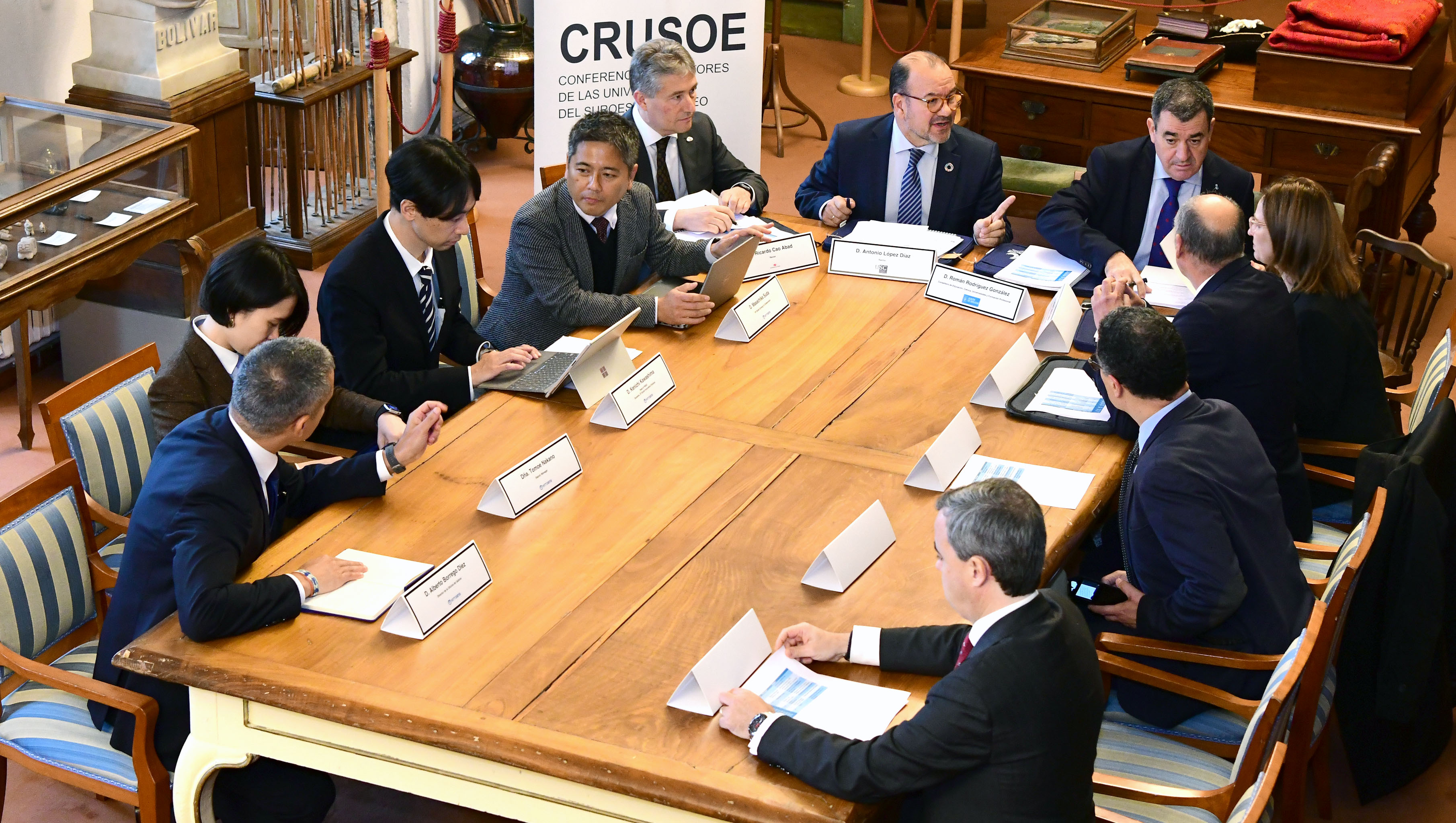 O reitor estará acompañado polo conselleiro de Educación, Ciencia, Universidades e Formación Profesional, Román Rodríguez; a directora da Axencia Galega de Innovación, Carmen Cotelo; o reitor da UDC e secretario xeral de CRUSOE, Ricardo Cao; o presidente executivo da Secretaría Xeral Técnica de CRUSOE, Salustiano Mato, e o director científico da Cátedra Institucional de Patrimonio Cultural Dixital, Juan Castro. A delegación da multinacional xaponesa estará formada por Kenichi Kawashima, Tomoe Nakano e Ayaka Goto, que estarán acompañados polos responsables de NTT DATA no Noroeste de España (Galicia e Asturias), Alberto Borrego e Pablo Manzano.