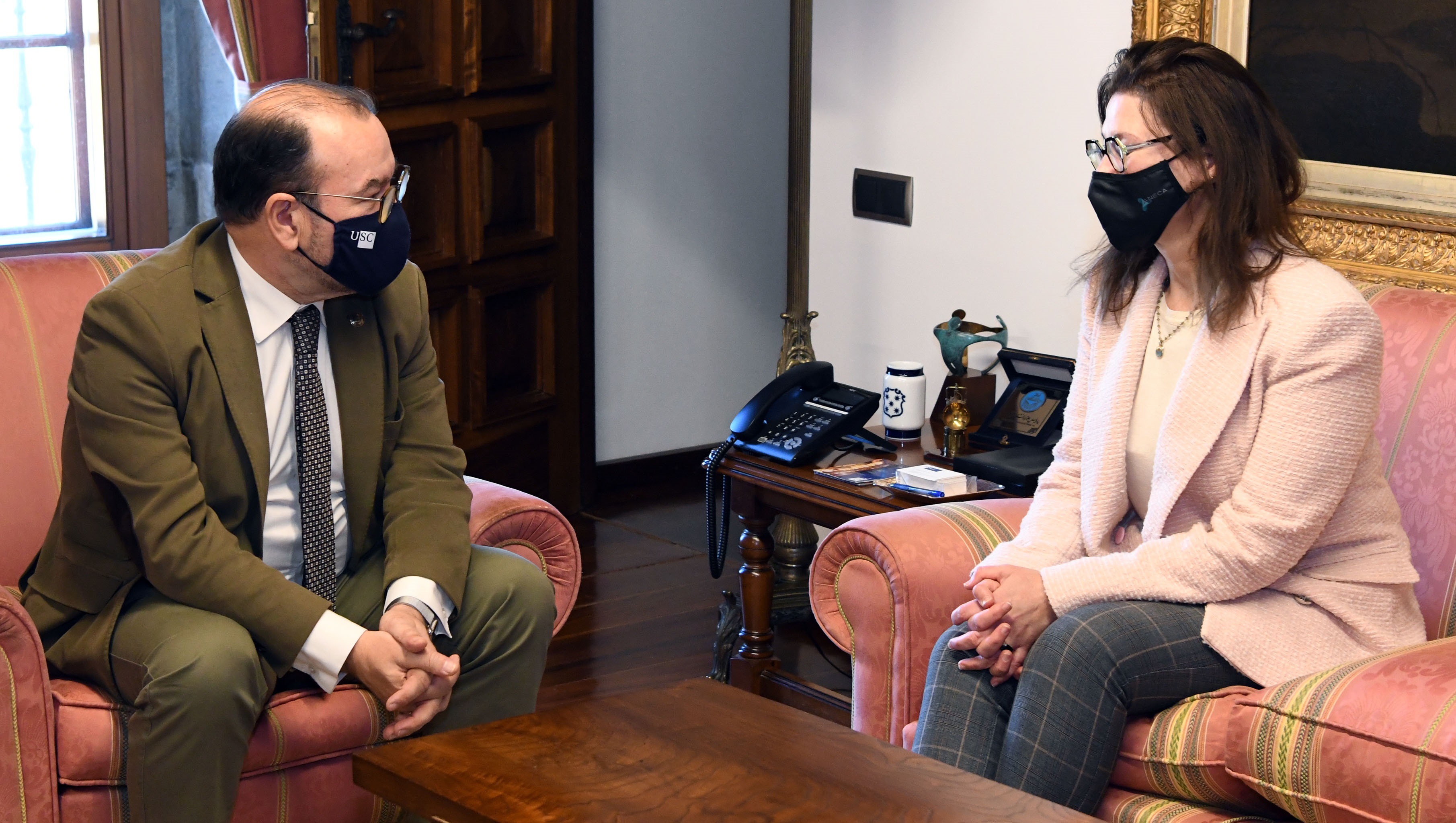 O reitor Antonio López e a directora da Axencia Nacional de Avaliación da Calidade e Acreditación (ANECA), Mercedes Siles, mantiveron unha xuntanza este martes 25, no Colexio de San Xerome, coa intención de estreitar os vínculos entre ambas as dúas entidades. A visita que se enmarca dentro dos encontros presenciais que o equipo directivo de ANECA está realizando a reitoras e reitores de universidades de toda España para explicar os cambios que se están impulsando dende a Axencia, permitiu coñecer, de primeira man, as necesidades existentes na institución compostelá.