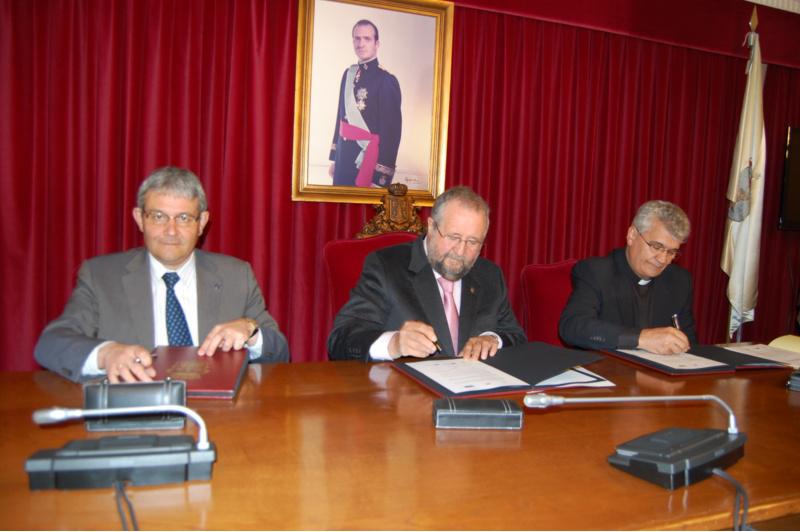 O proxecto ‘Muralla Dixital’, no que se propón o estudo das cidades galegas de Santiago e de Lugo, así como dos enclaves portugueses de Monçao, Melgaço e Valença, está liderado polo Concello de Lugo, mentres que a participación da USC, un dos socios colaboradores do proxecto, centrarase na elaboración dun estudo evolutivo das cidades de Lugo e de Santiago. O obxecto fundamental deste traballo é propón o estudo urbano das dúas cidades a partir dun elemento patrimonial indiscutible como é o caso da muralla de Lugo. O convenio asinado este venres entre a USC, Concello de Lugo e diocese de Lugo sirve de marco legal co que se dá autorización ao persoal do Concello e da USC para acceder ao patrimonio eclesiástico e captar imaxes do seu interior e exterior, así como dos bens ou elementos artísticos que acubillan. O coñecemento e a posterior divulgación deste patrimonio a través da dixitalización das imaxes captadas antóllase de sumo interese para a investigación que desenvolverá a USC, xa que ata o pasado século XIX Lugo era unha cidade episcopal, co que o bispo era a máxima autoridade da que, en certa medida, dependían todas as demais institucións (Concello, tribunais...). Daquela, a posibilidade de acceder ao rico patrimonio eclesiástico de Lugo é esencial para explicar a evolución experimentada pola cidade. O alcalde de Lugo, José López Orozco, adiantou que o resultado do traballo desenvolvido ao abeiro deste convenio (a toma de fotografías e a súa posterior dixitalización) estará a disposición de toda a sociedade tanto na páxina web do Concello de Lugo como noutras aplicacións tecnolóxicas e dispositivos nos que está a traballar o goberno local en aras a mellorar a promoción turística da cidade e a súa proxección no exterior. O rexedor lugués destacou tamén que a fotografía e dixitalización dos bens patrimoniais máis salientables da cidade de Lugo constituirá unha ferramenta de grande utilidade para estudosos e investigadores, que poderán coñecer de xeito virtual os distintos elementos patrimoniais sen necesidade de ter que desprazarse. As accións a realizar no marco deste convenio comezarán a desenvolverse de xeito inmediato e deberían estar rematadas no mes de xuño. O vicario xeral da Diocese de Lugo, Mario Vázquez Carballo, sinalou no acto de sinatura que este convenio entre USC, Concello e Diocese dá cobertura legal e normaliza a colaboración entre as tres institucións implicadas. Vázquez Carballo destacou asemade a satisfacción que supón para o Bispado lugués poder amosar e compartir os seus bens coa sociedade, ao tempo que salientou a relación entre cristiandade e cidadanía. O vicerreitor de Coordinación e Planificación do campus de Lugo, Pedro García Herradón, destacou a necesidade da colaboración e cooperación entre administracións e institucións para poder desenvolver proxectos na actual situación de crise. Asemade, logo de afondar no interese da temática e da utilidade do convenio, García Herradón fixo fincapé na importancia que supón para un campus especializado nos eidos agroforestal e gandeiro como é o caso de Lugo contar cunha Facultade de Humanidades, porque “completa e mellora a súa oferta formativa”, dixo.