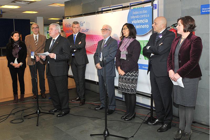 A xornada arrancou na Universidade de Santiago coa inauguración do programa de Concienciación e Prevención da Violencia de Xénero nos sete campus universitarios da Secretaría Xeral da Igualdade. Nunha sesión na Biblioteca Concepción Arenal inauguraron o punto informativo deste programa os reitores das universidades de Santiago e A Coruña, Juan Viaño e Xosé Luis Armesto, a vicerreitora de Estudantes da Universidade de Vigo, Dolores González, e o vicepresidente e conselleiro de Presidencia, Administracións Públicas e Xustiza, Alfonso Rueda Valenzuela, e unha representación de Abanca e El Corte Inglés, como entidades colaboradoras.