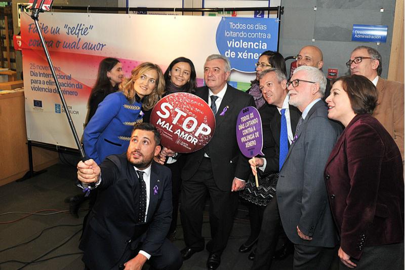En primeiro termo, as autoras e o autor de 7 relatos curtos contra a violencia de xénero xunto coas autoridades que acudiron ao acto. Foto: Servimav-USC A marcha contra a violencia de xénero transcorreu polo Campus Vida (Foto: Santi Alvite) Patricia Jorganes Jorganes, primeira pola esquerda, recibiu o premio do II Concurso de Lemas, co texto 'Cero tolerancia, cero dezaseis' As autoridades fixéronse un selfie 'contra o mal amor' na Concepción Arenal (Foto: Santi Alvite)