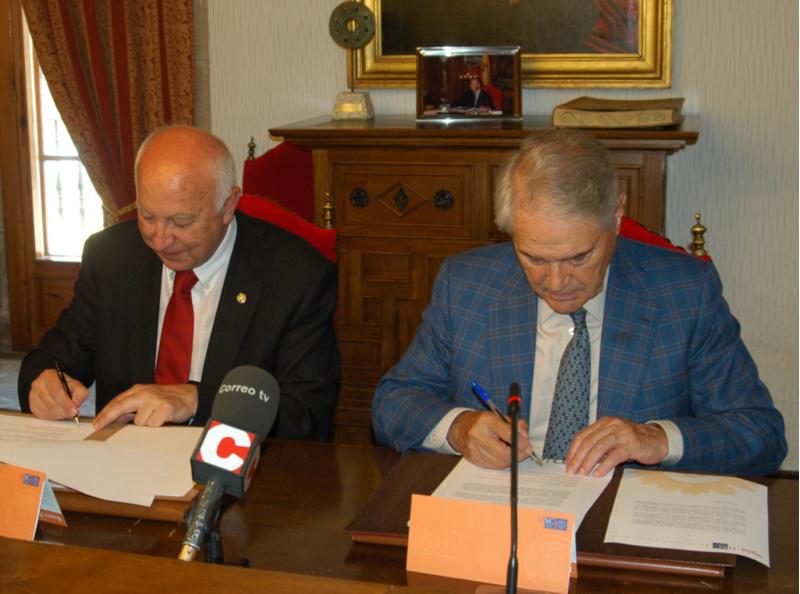 O reitor Juan Casares e o presidente de Aresa asinando o convenio en San Xerome (Foto: Alfonso)