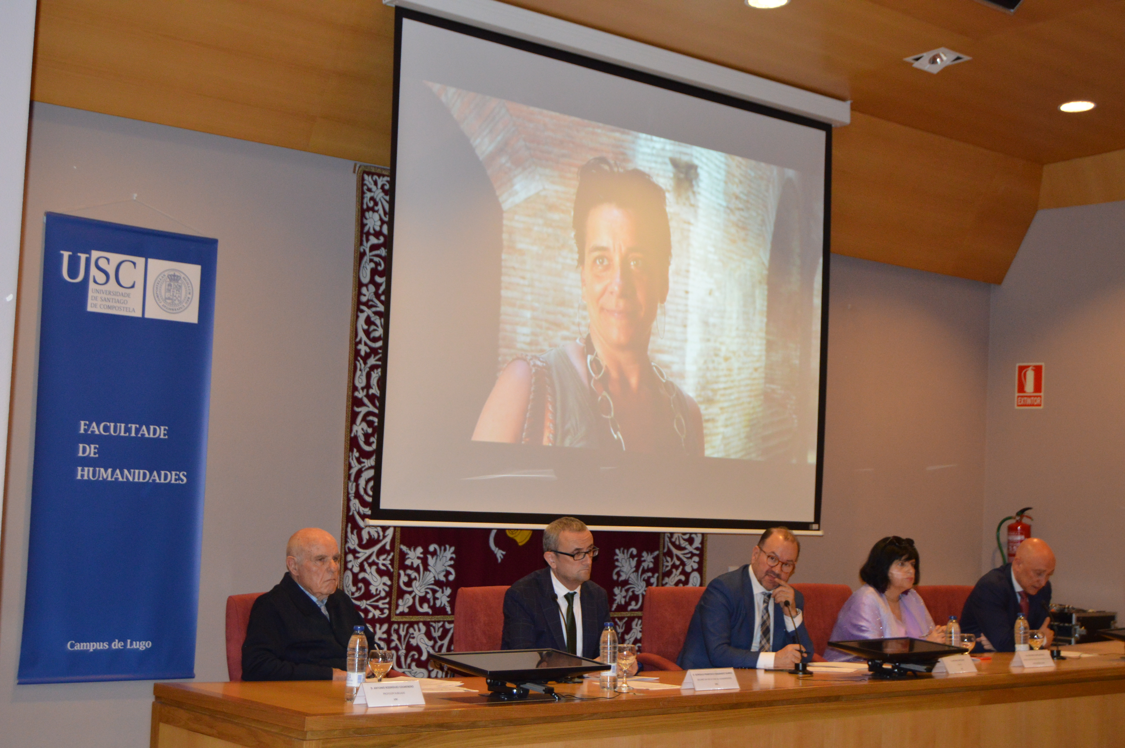 Antonio Rodríguez, Gonzalo Fernández, Antonio López, Encarna Lago e Juan Manuel Monterroso, na Facultade de Humanidades
