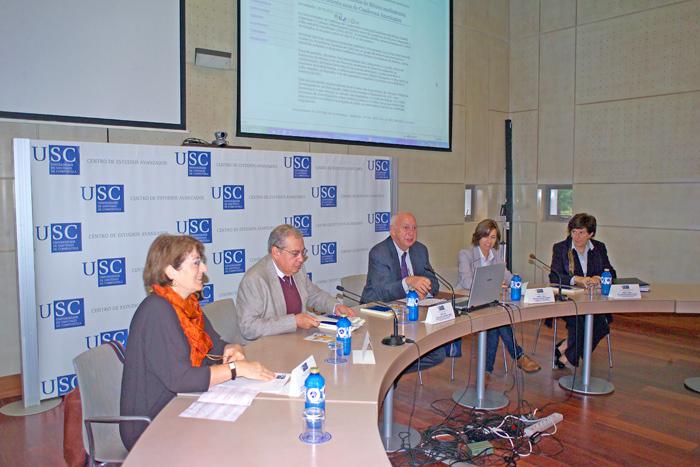 As Universidades de Santiago de Compostela e Nacional Autónoma de México (UNAM) organizan o Coloquio Internacional ‘Setenta anos de Cuadernos Americanos: Migración e exilio español republicano (1942-2012)’. O encontro desenvólvese no Centro de Estudos Avanzados dende este martes ata o xoves 11. Ao longo das tres xornadas trataranse cuestións relacionadas coa revista internacional Cuadernos Americanos, fundada en 1942 por un grupo de intelectuais mexicanos e españois exiliados e dedicada á reflexión sobre temas e problemas de América Latina. O encontro inaugurouno o reitor Juan Casares, que estivo acompañado da directora do Centro de Estudos Avanzados, a profesora María Xosé Rodríguez Galdo; da decana da Facultade de Ciencias Económicas e Empresariais da USC, Emilia Vázquez; da directora xeral de Proxectos Universitarios da UNAM, Mª del Carmen Puche; e do director do Centro de Investigación sobre América Latina e do Caribe da UNAM, Adalberto Santana, encargado da conferencia de apertura titulada ‘Sete décadas de Cuadernos Americanos’. A sesión continuou coa intervención do profesor da USC José Manuel González Herrán sobre as colaboracións de Emilia Pardo Bazán na prensa americana entre 1879 e 1921 e de Pedro Pérez e Inmaculada Simón, da Universidade de Alcalá de Henares, sobre os retornados da emigración e do exilio. Do exilio arxentino e mexicano de Rafael Dieste fala pola tarde o catedrático Darío Villanueva, a quen lle sigue de novo María Xosé Rodríguez Galdo cunha intervención sobre a contribución do equipo CEPAM ao estudo das migracións e o exilio en Galicia. Novas realidades migratorias O embaixador mexicano Gilberto Bosques e o seu apoio ao exilio español en Marsella, a lei de cidadanía española no exterior ou a Biblioteca América da USC son outras cuestións a tratar nos seguintes dous días que dura o encontro científico. Das universidades organizadoras levan o peso do coloquio a Rede de Investigadores en Demografía, Historia Económica e Migracións da USC (Grupo RIDHEM) –que presentará a súa achega ao estudo das migracións e o exilio en Galicia- e o Centro mexicano de Investigacións sobre América Latina e o Caribe. De aí que moitas das intervencións se centren na pegada do exilio, os retornados e as novas realidades migratorias. De esquerda a dereita, Juan Casares, Darío Villanueva e Adalberto Santana. Foto: Alfonso-Servimav