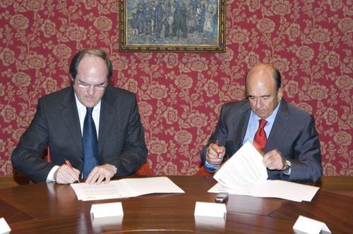 Ángel Gabilondo e Emilio Botín asinaron este martes o convenio que formaliza o Programa Santander-CRUE de mobilidade Iberoamericana
