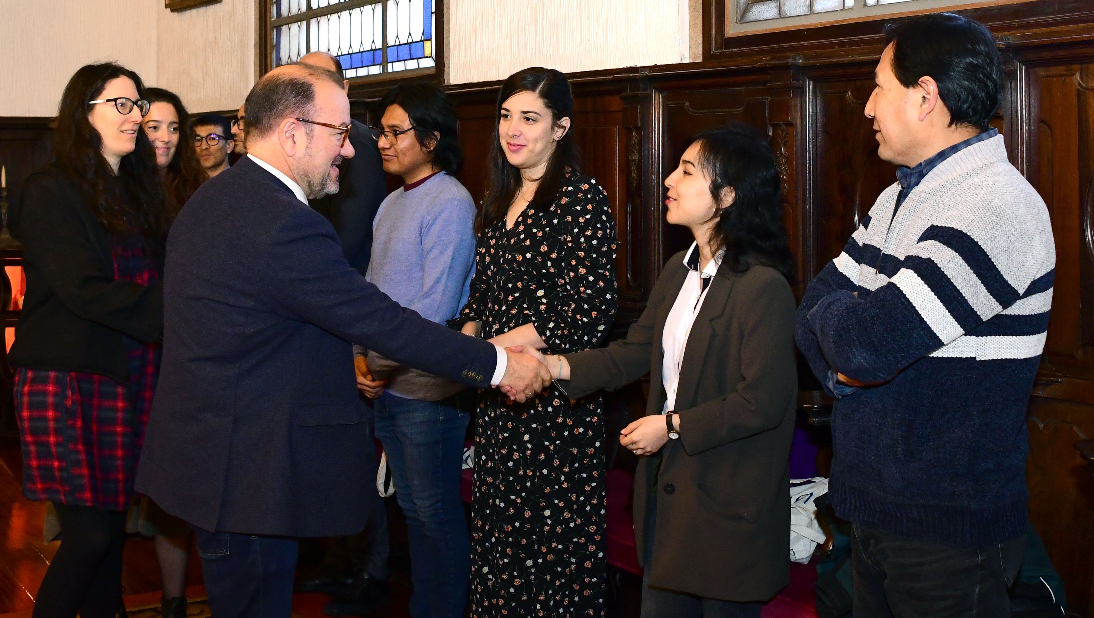 O reitor Antonio López recibiu unha vintena de alumnos e alumnas beneficiarias dos programas de Axudas a Persoas Refuxiadas, Mujeres por África e Fundación Carolina