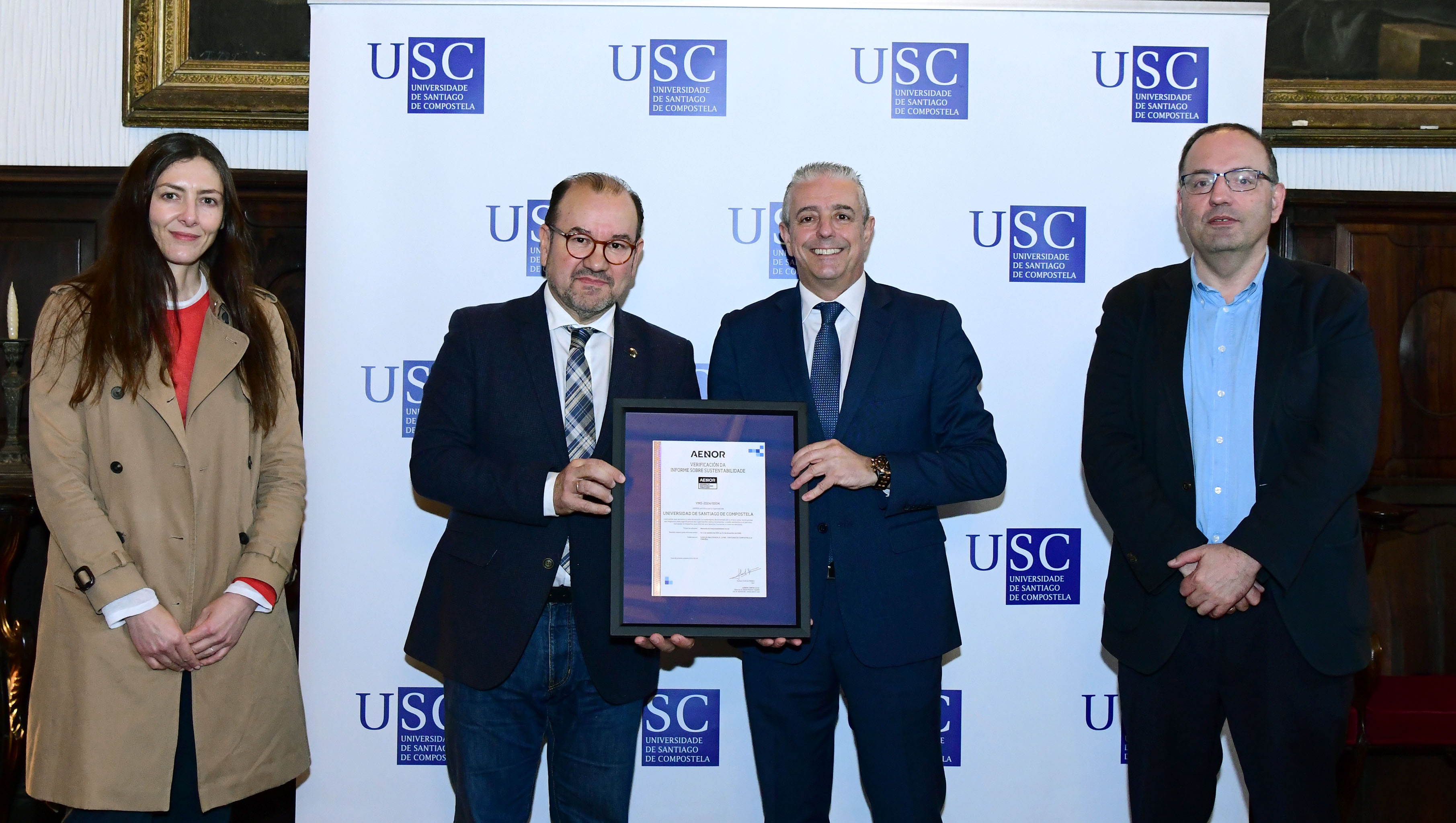 A entidade verificadora estivo representada hoxe no acto polo director da Rexión Atlántica de AENOR CONFIA, SAU, Martín Pita López, e a el tamén asistiron o vicerreitor de Transformación Dixital e Innovación, Gumersindo Feijoo, e a vicexerenta xeral técnica da USC, Pilar Martínez.