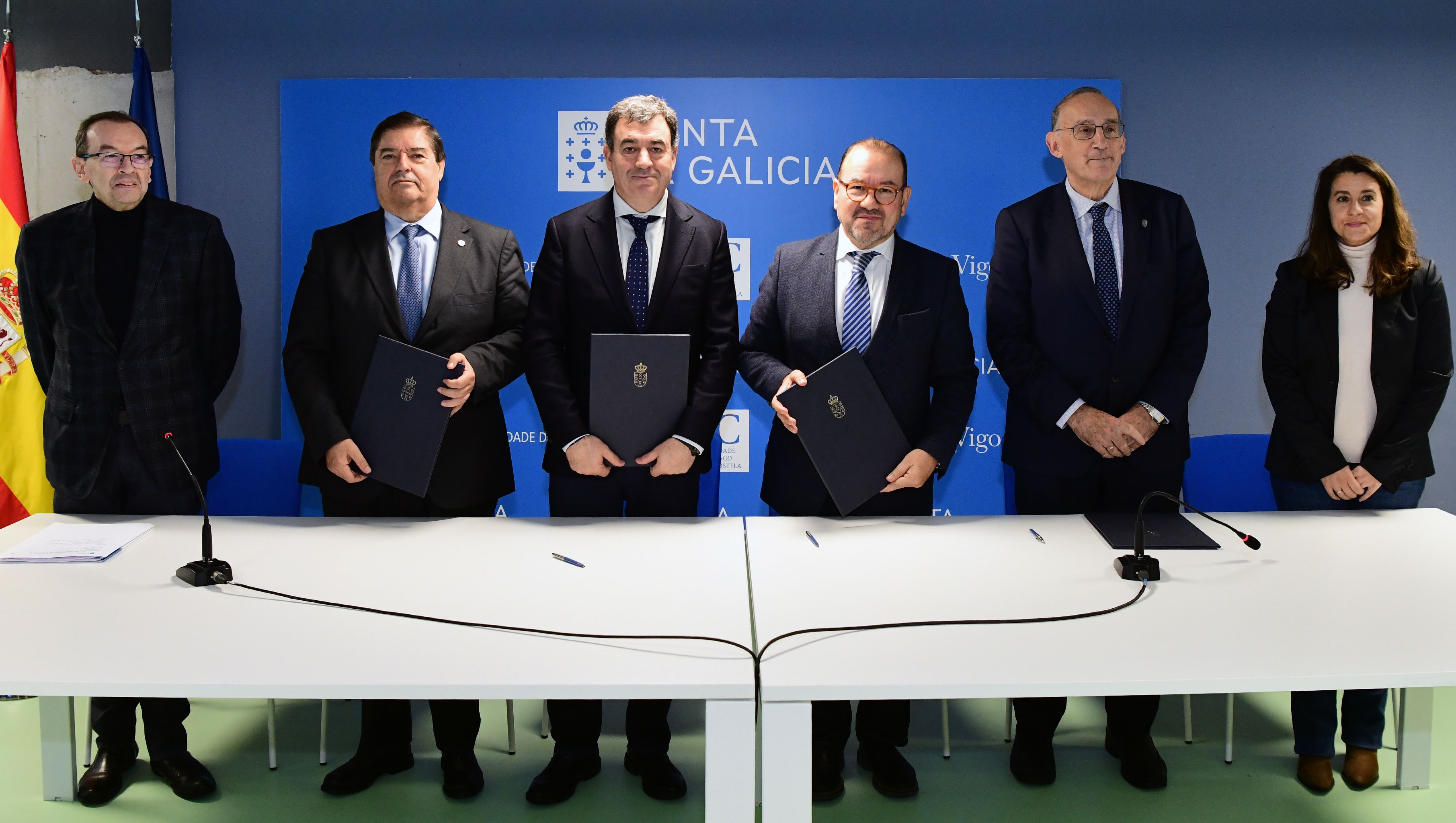 O documento destaca que “o impulso da actividade investigadora é un obxectivo irrenunciable para calquera sociedade, por iso é necesario fomentar unha maior integración entre as universidades e os sectores produtivos”. Deste xeito, o acordo entre USC, UDC, UVigo e Xunta incide “na cultura de calidade e eficacia na utilización de infraestruturas e do capital humano que permitan unha mellora significativa na totalidade dos sectores produtivos e, á súa vez, a potenciación dunha universidade galega de calidade”. Os reitores Antonio López (USC), Julio Abalde (UDC) e Manuel Reigosa (UVigo) asinaron o convenio de colaboración xunto co conselleiro Román Rodríguez.