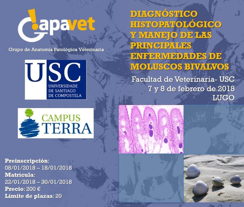 O obxectivo deste curso teórico-práctico é transferir a profesionais do sector acuícola, fundamentalmente veterinarios, pero tamén a outros profesionais como biólogos ou graduados en Ciencias do Mar, coñecementos básicos sobre a anatomía e histoloxía dos moluscos de interese comercial, o diagnóstico microscópico das súas principais enfermidades (víricas, bacterianas e parasitarias) e as estratexias de loita que levan a cabo para o seu control.