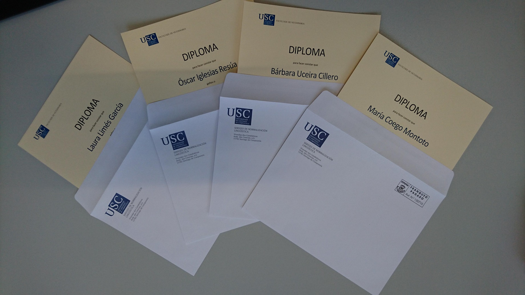Diplomas dos gañadores da última convocatorio dos premios da Comisión de Normalización Lingüística de Veterinaria