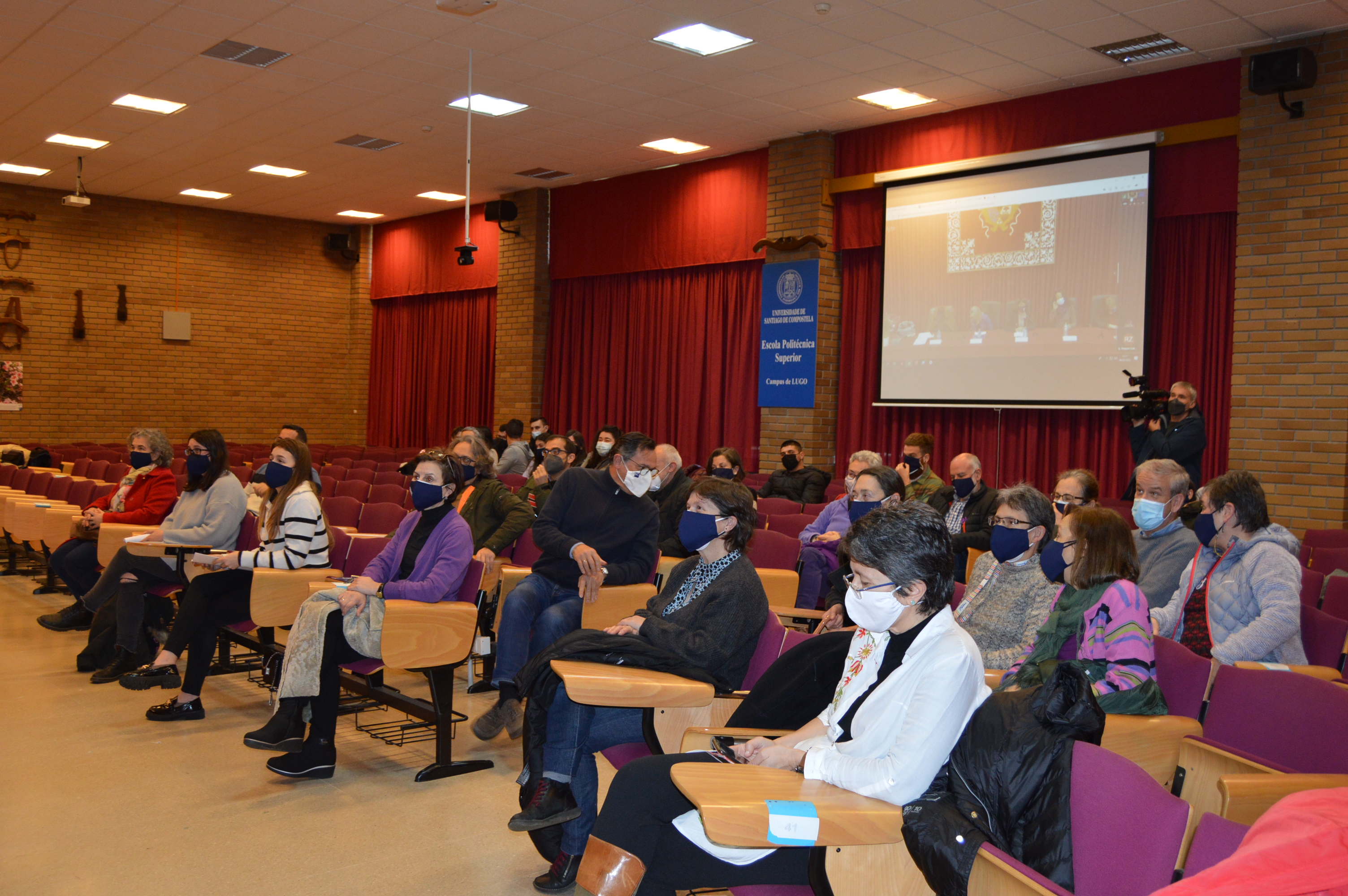A vicerreitora de Coordinación do Campus de Lugo, Montserrat Valcárcel Armesto, presidiu esta sesión, na que tamén participaron a presidenta da Comisión de Igualdade de Xénero da EPS de Enxeñaría, Dolores Fernández; así como a tenente de alcaldesa do Concello de Lugo, Ana González Abelleira; a xefa territorial da Consellería de Medio Rural en Lugo, Olga Iglesias Fontal, e a deputada provincial delegada da área de Muller e Igualdade, María Loureiro. Alén das intervencións das autoridades presentes, a enxeñeira de Montes formada na EPS de Enxeñaría da USC Raquel Zolle ofreceu o relatorio ‘O papel da muller enxeñeira na cooperación internacional.