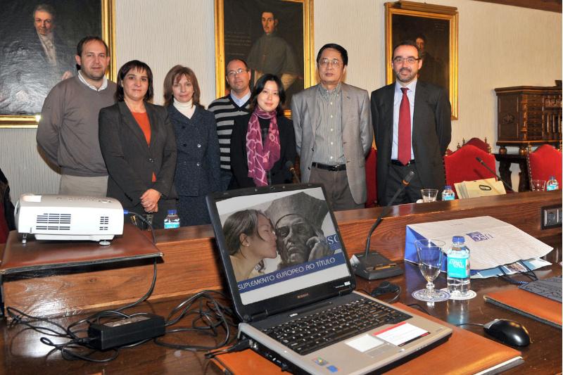 A delegación da Universidade de Sun Yat-sen que estes días visita a USC mantivo este venres 16 unha xuntanza de traballo con responsables universitarios composteláns co vicerreitor de Relacións Exteriores e Internacionalización, Víctor Millet, á cabeza. O obxectivo da visita é fortalecer e ampliar as relacións que ambas institucións manteñen dende a sinatura este mesmo ano dun convenio de intercambio. Asentada en Guangzhou, capital da provincia de Cantón, a de Sun Yat-sen está considerada unha das mellores universidades de China. No Salón Reitoral do Colexio de San Xerome, á xuntanza asistiron ademais do vicerreitor o coordinador de Relacións Exteriores, Jacobo Feás; o xefe do Servizo de Relacións Exteriores, Enrique López Veloso; o decano da facultade de Filoloxía, Ernesto González Seoane; a vicedecana de Relacións coas Empresas e Institucións da Facultade de Ciencias Económicas, Loreto Fernández; e a directora do CLM, Katerina Vlasakova. A visita da delegación china comezou este mesmo xoves nun encontro en Química cos nove estudantes chineses que se atopan en Santiago en virtude do convenio de intercambio asinado. Ao encontro estaban convidados tamén estudantes de lingua chinesa que cursan estudos no Centro de Linguas Modernas (CLM).