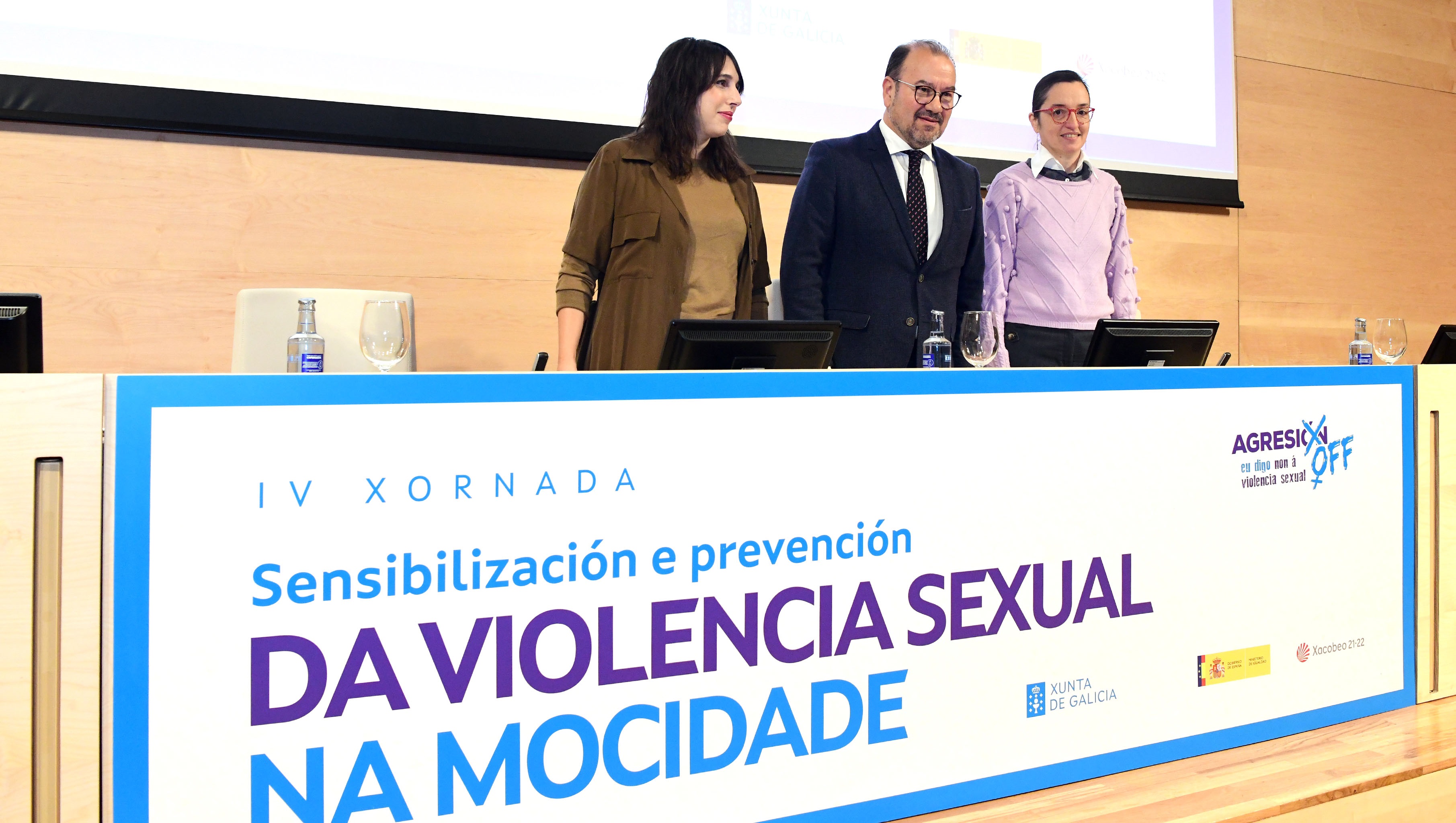A cuarta edición das Xornadas Agresión OFF desenvólvese este luns, 14 de novembro, grazas ao impulso das Oficinas para a Igualdade de Xénero das tres universidades públicas galegas e a Secretaría Xeral de Igualdade da Xunta de Galicia. A sesión en quenda de mañá ten lugar na Facultade de Medicina e Odontoloxía, mentres que os relatorios de tarde desenvólvense en Ciencias da Educación. O reitor Antonio López presidiu o acto de apertura no que tamén participou a conselleira de Promoción de Emprego e Igualdade, María Jesús Lorenzana Somoza; Cristina López Villar, vicerreitora de Igualdade, Cultura e Deporte da UDC; e a vicerreitora de Benestar, Equidade e Diversidade da UVigo, María Isabel Doval Ruiz, quen interveu en liña.
