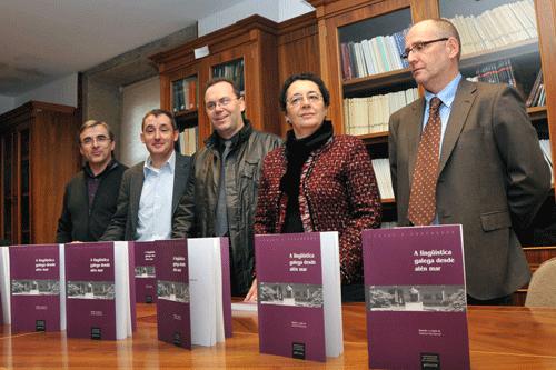 A biblioteca do Instituto da Lingua Galega (ILG) acolleu este mércores a presentación do libro A lingüística galega desde alén mar. No acto participaron a directora do ILG, Rosario Álvarez; o director do Departamento de Filoloxía Galega da USC, Francisco Cidrás; e o coordinador da edición e profesor da Universidade de Wisconsin-Milwaukee, Gabriel Rei-Doval. Asistiron ademais o director académico do Servizo de Publicacións, Antonio Azaustre, e o director do mesmo servizo, Juan Blanco.