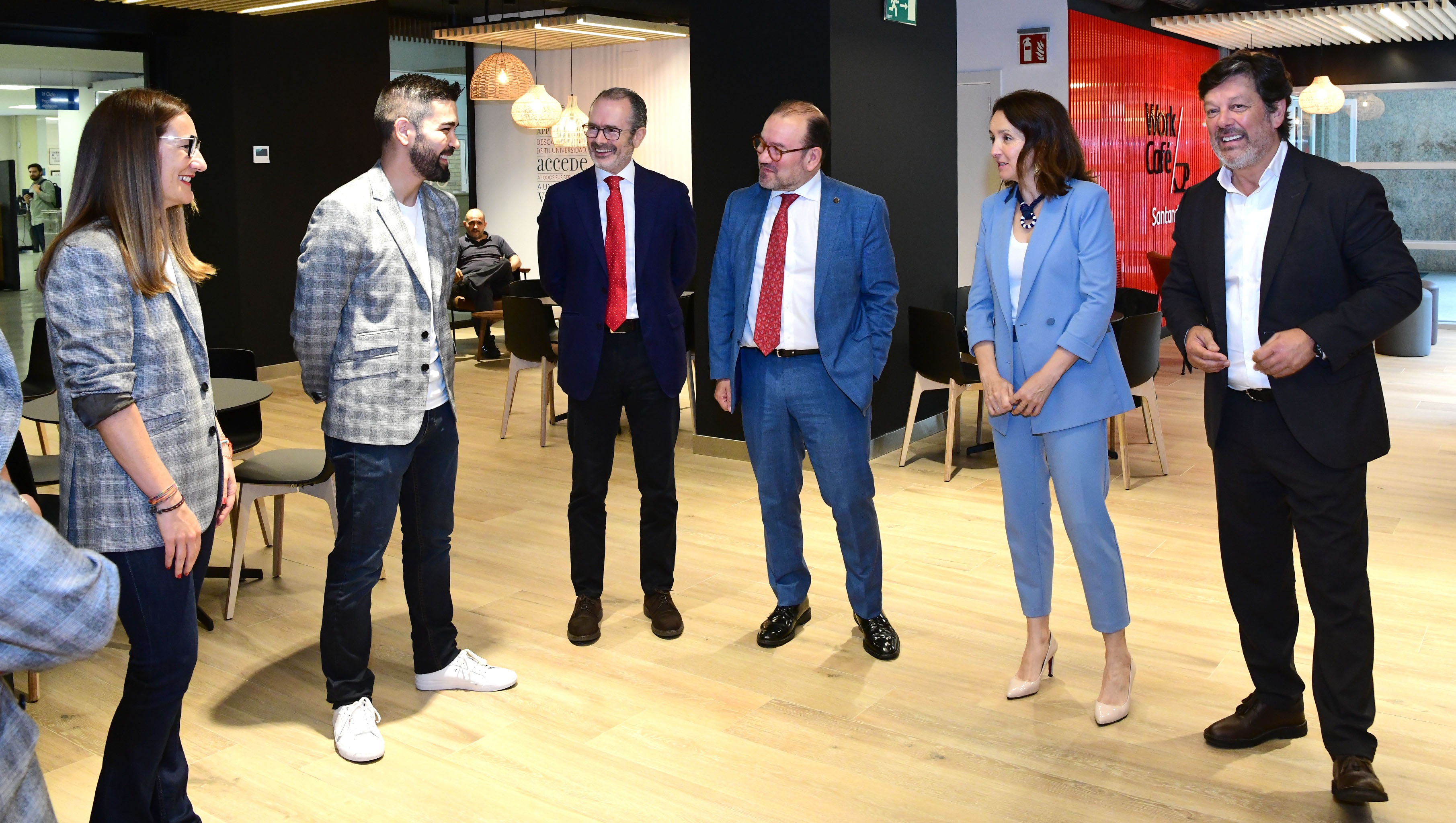 Xunto ao reitor, visitou o ‘WorkCafé’ o xerente Javier Ferreira. Por parte do Santander, acudiron Rocio Pazos, directora territorial; María Gonzalez, directora de zona; e Luis Pernas, director de Banca Institucional.