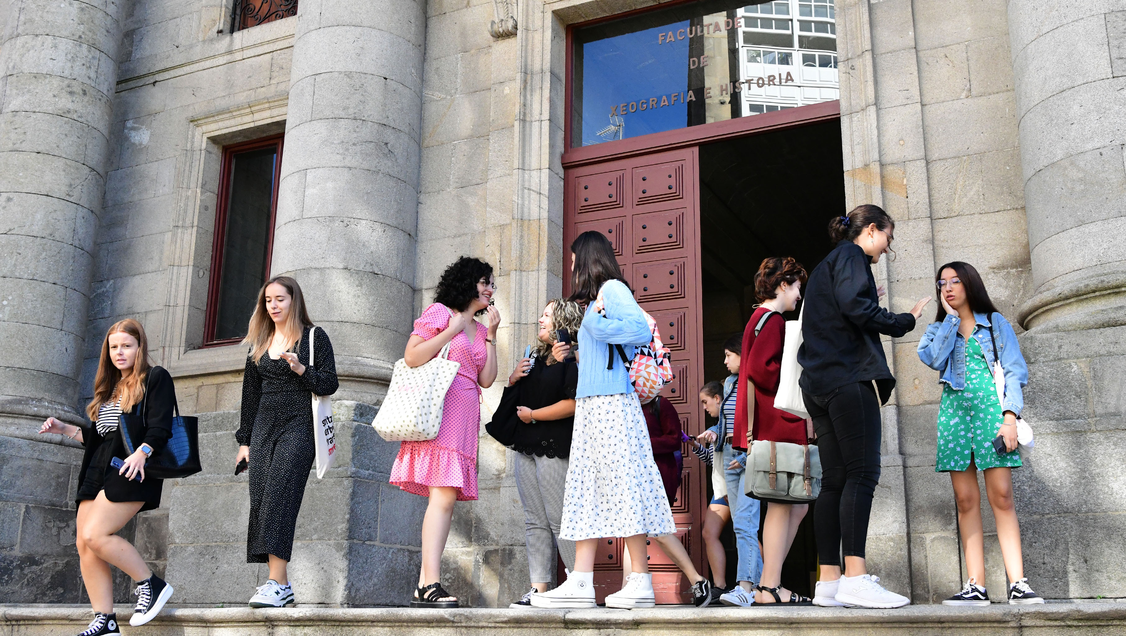 Estudantado diante da Facultade de Xeografía e Historia. FOTO: Santi Alvite