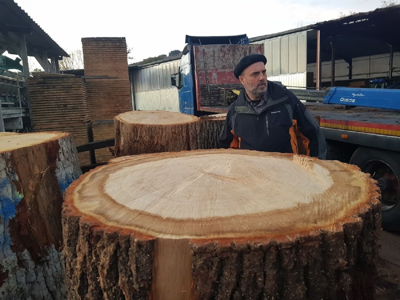 Troncos de árbores, nun serradoiro